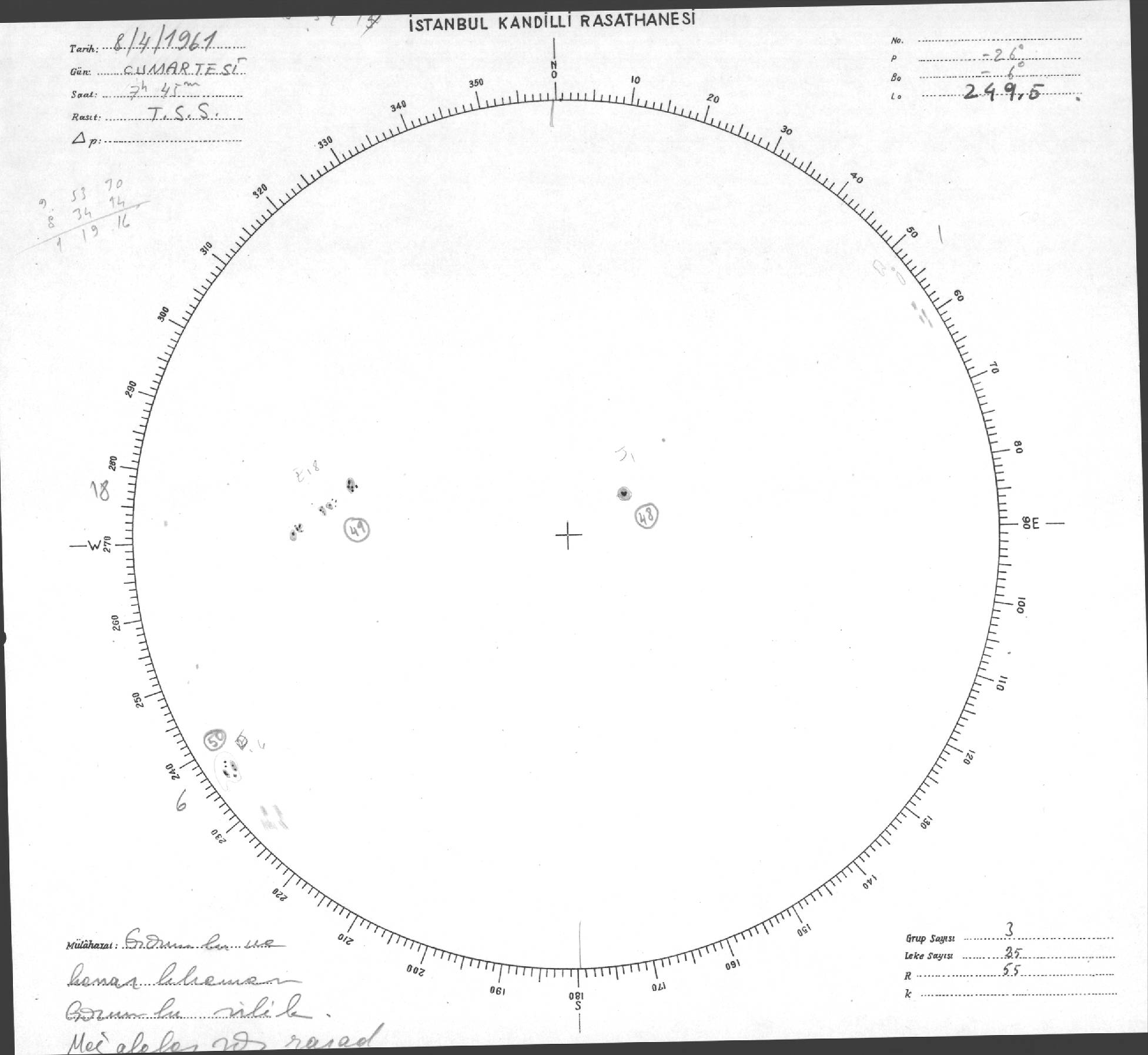 Güneş Lekesi Çizimi - 08.04.1961