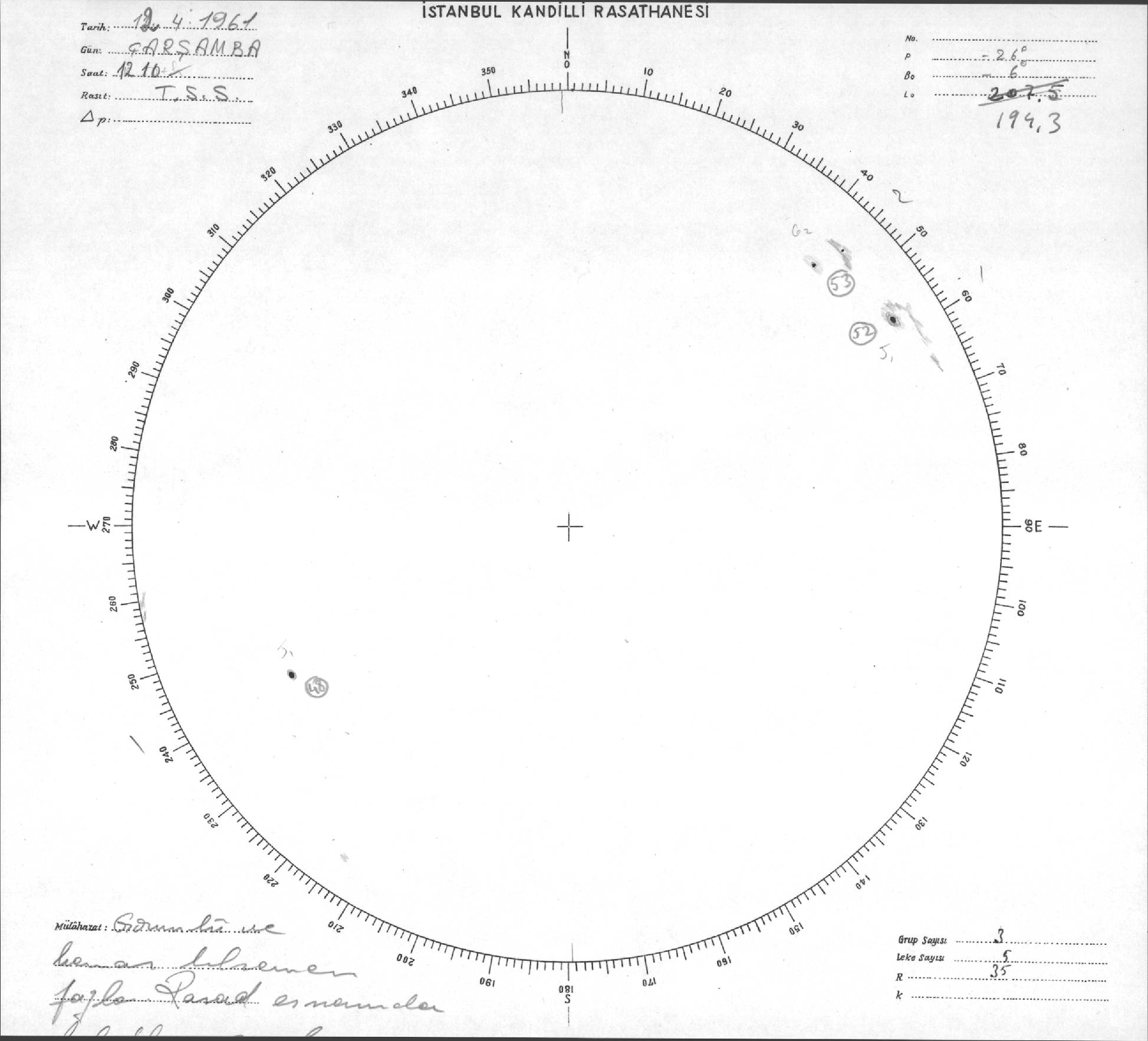 Güneş Lekesi Çizimi - 12.04.1961