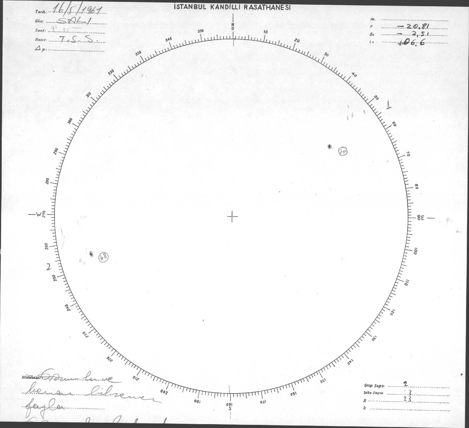 Güneş Lekesi Çizimi - 16.05.1961