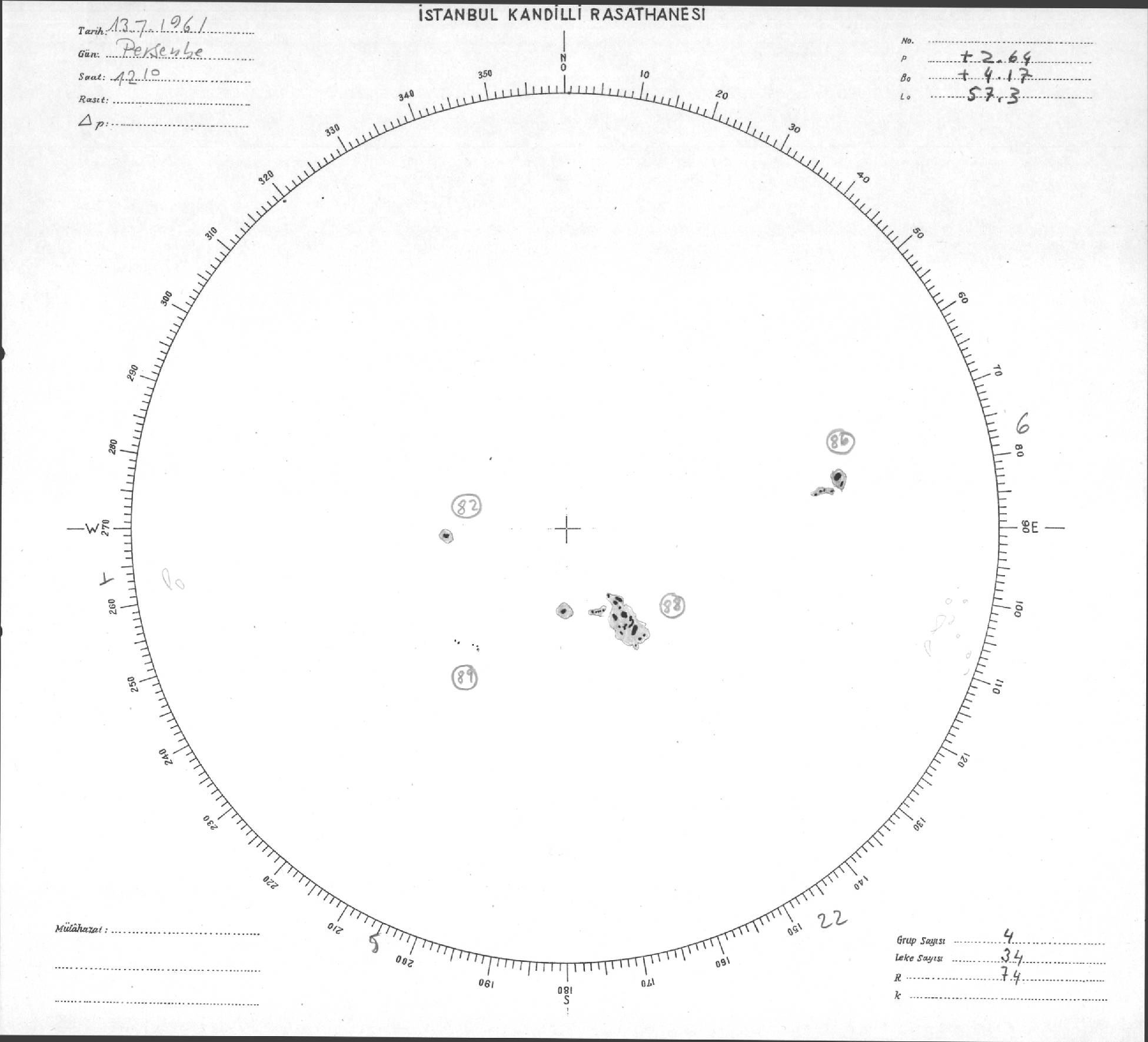 Güneş Lekesi Çizimi - 13.07.1961