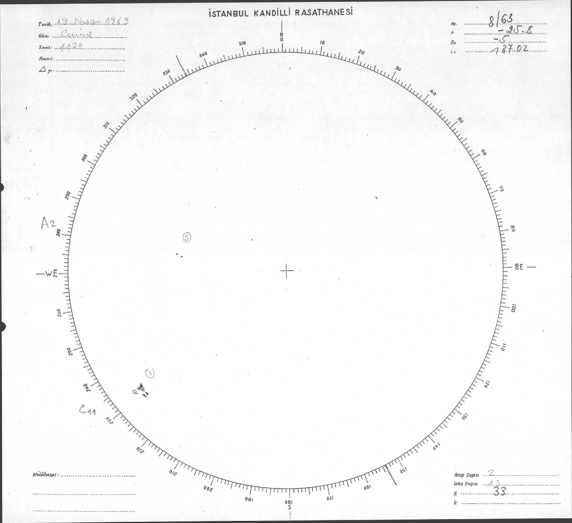 Güneş Lekesi Çizimi - 19.04.1963
