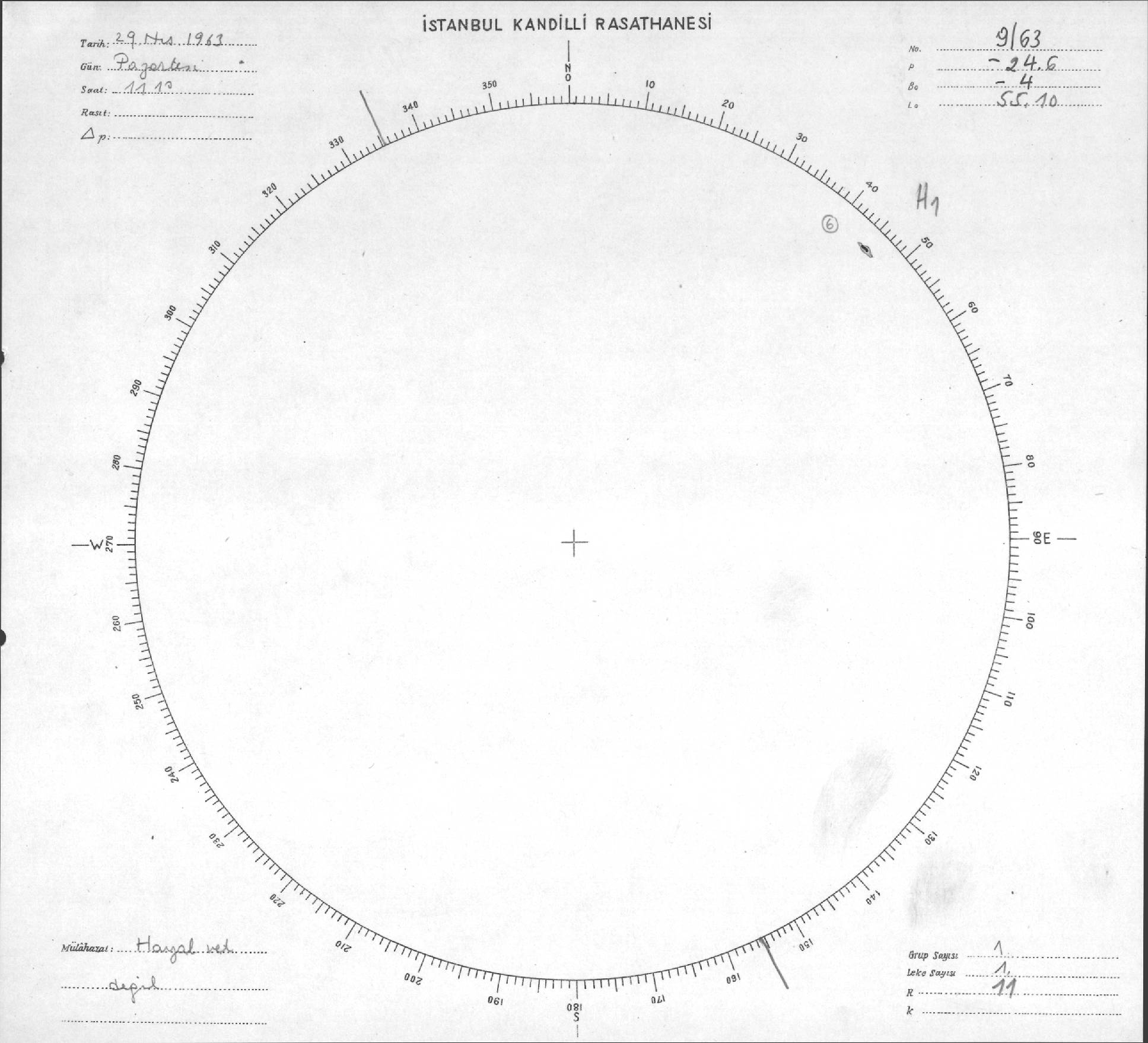 Güneş Lekesi Çizimi - 29.04.1963