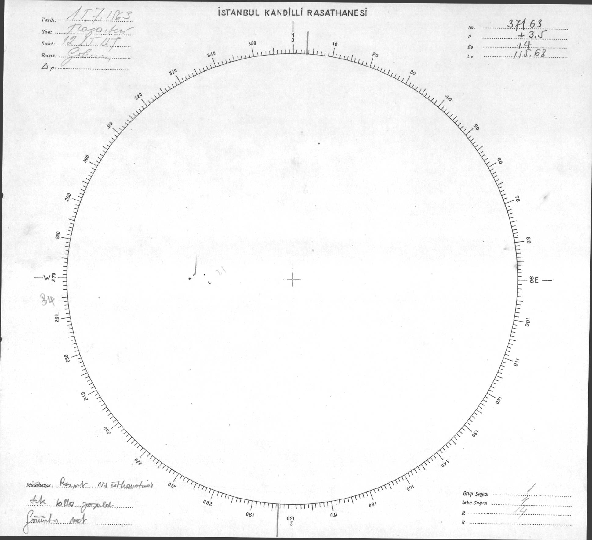 Güneş Lekesi Çizimi - 15.07.1963