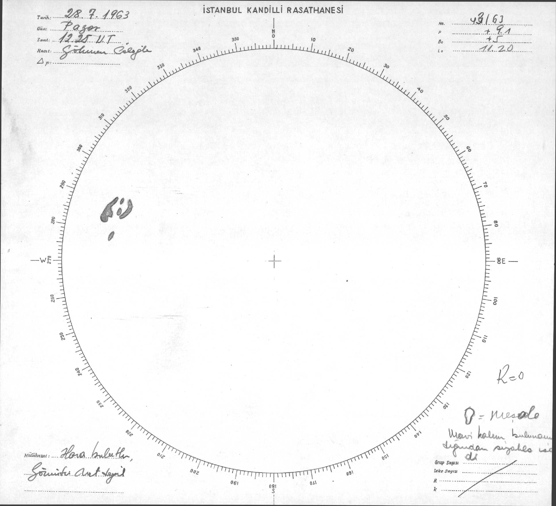 Güneş Lekesi Çizimi - 28.07.1963