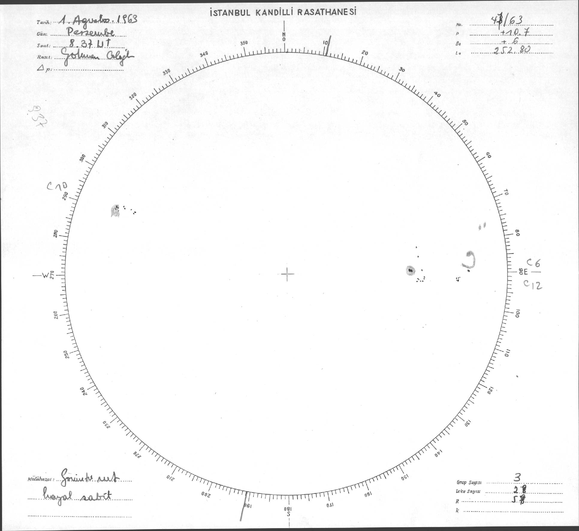 Güneş Lekesi Çizimi - 01.08.1963