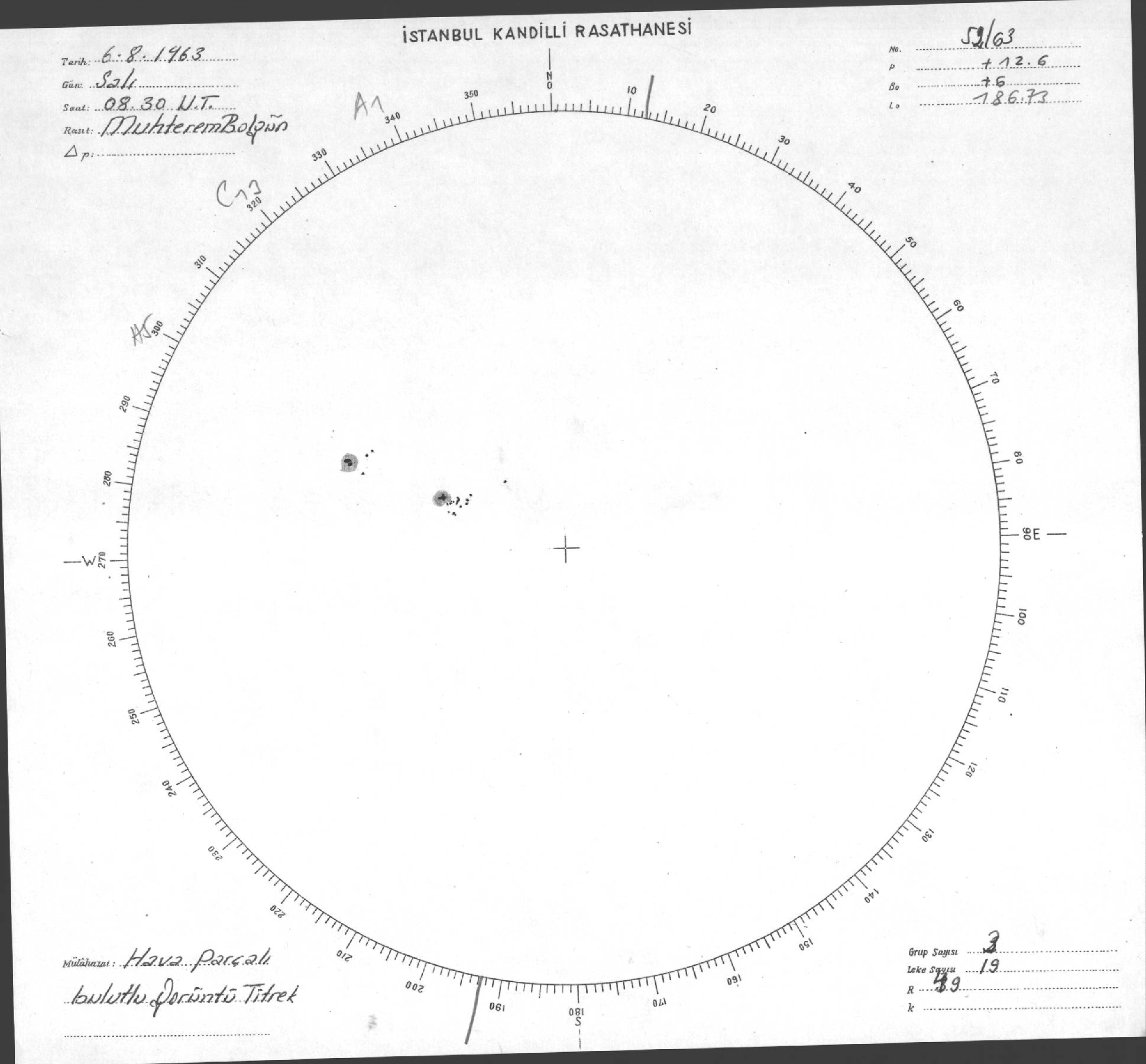 Güneş Lekesi Çizimi - 06.08.1963