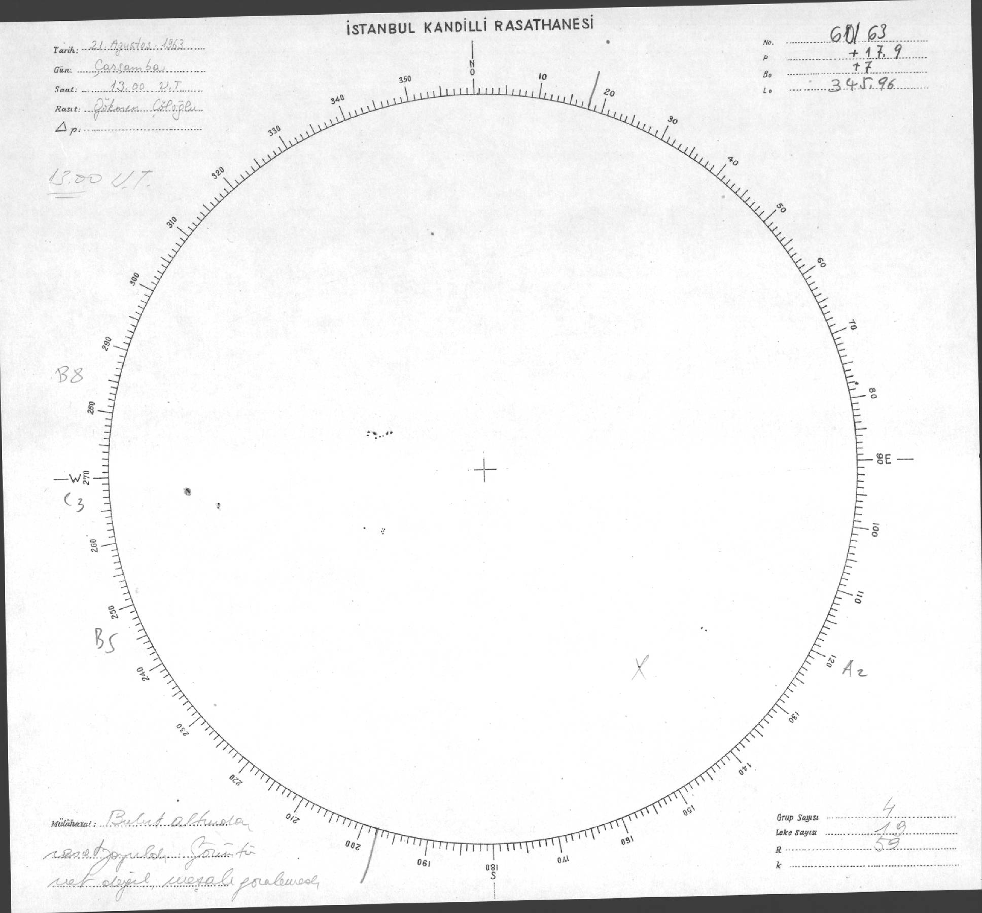 Güneş Lekesi Çizimi - 21.08.1963