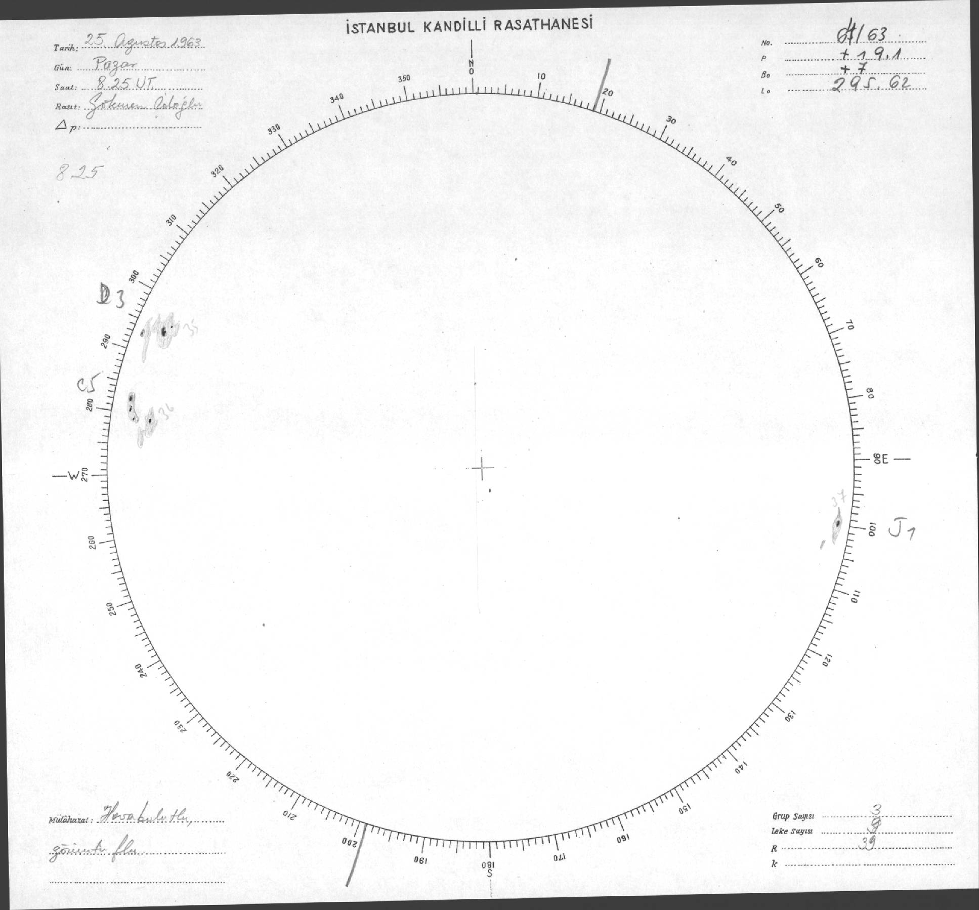 Güneş Lekesi Çizimi - 25.08.1963
