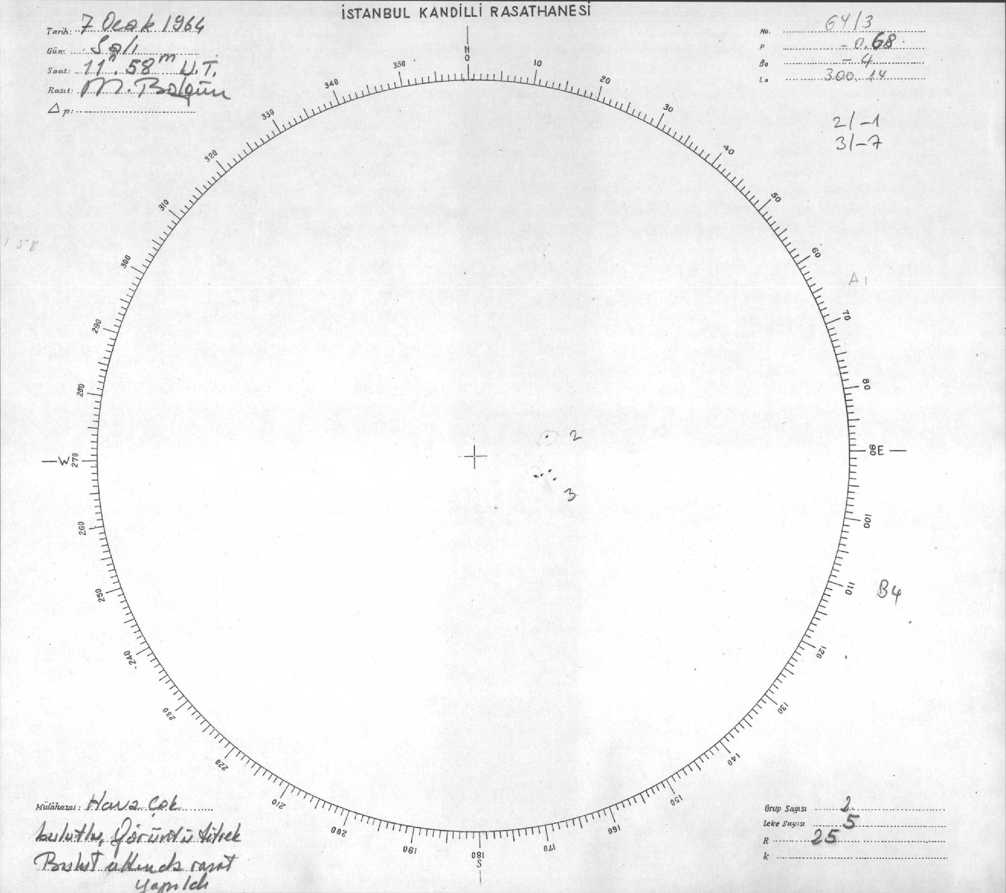 Güneş Lekesi Çizimi - 07.01.1964
