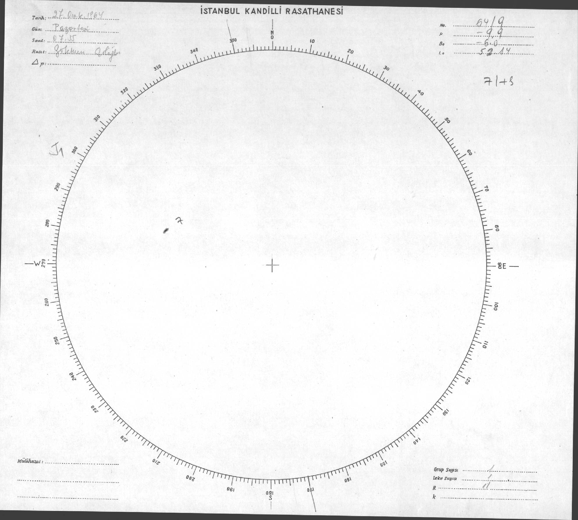 Güneş Lekesi Çizimi - 27.01.1964