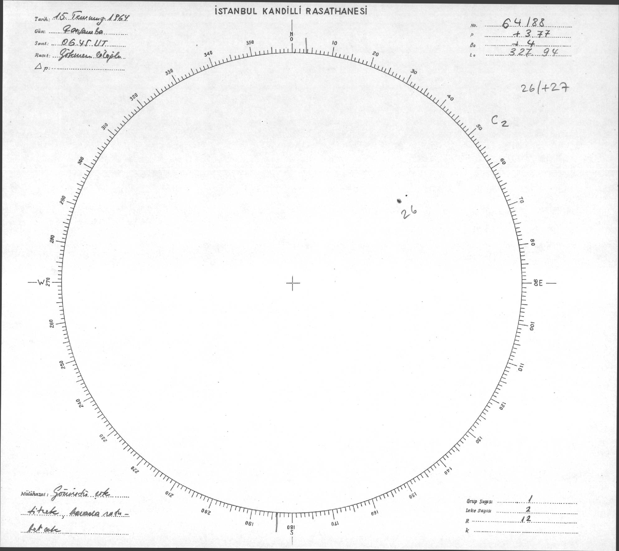 Güneş Lekesi Çizimi - 15.07.1964