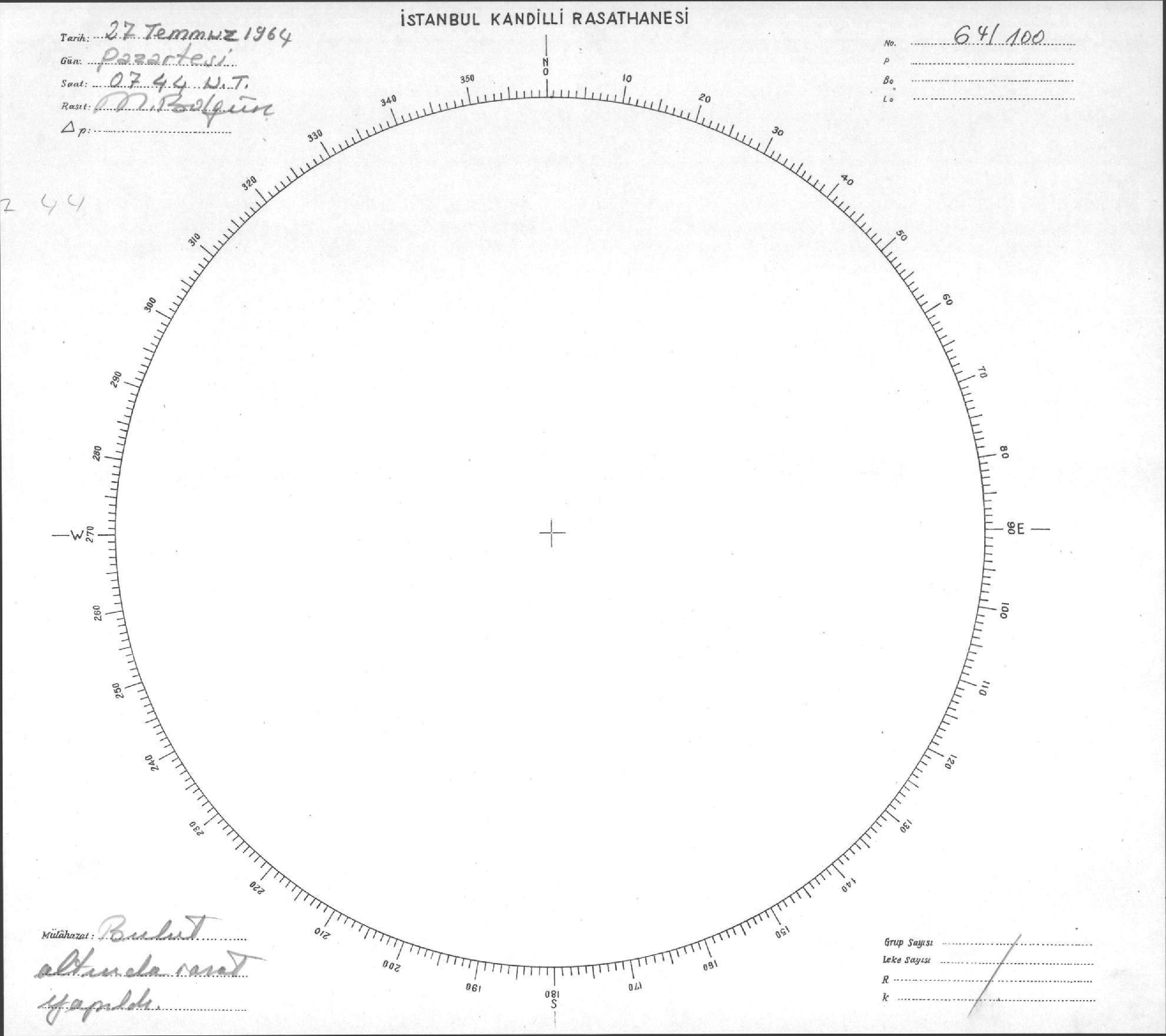Güneş Lekesi Çizimi - 27.07.1964