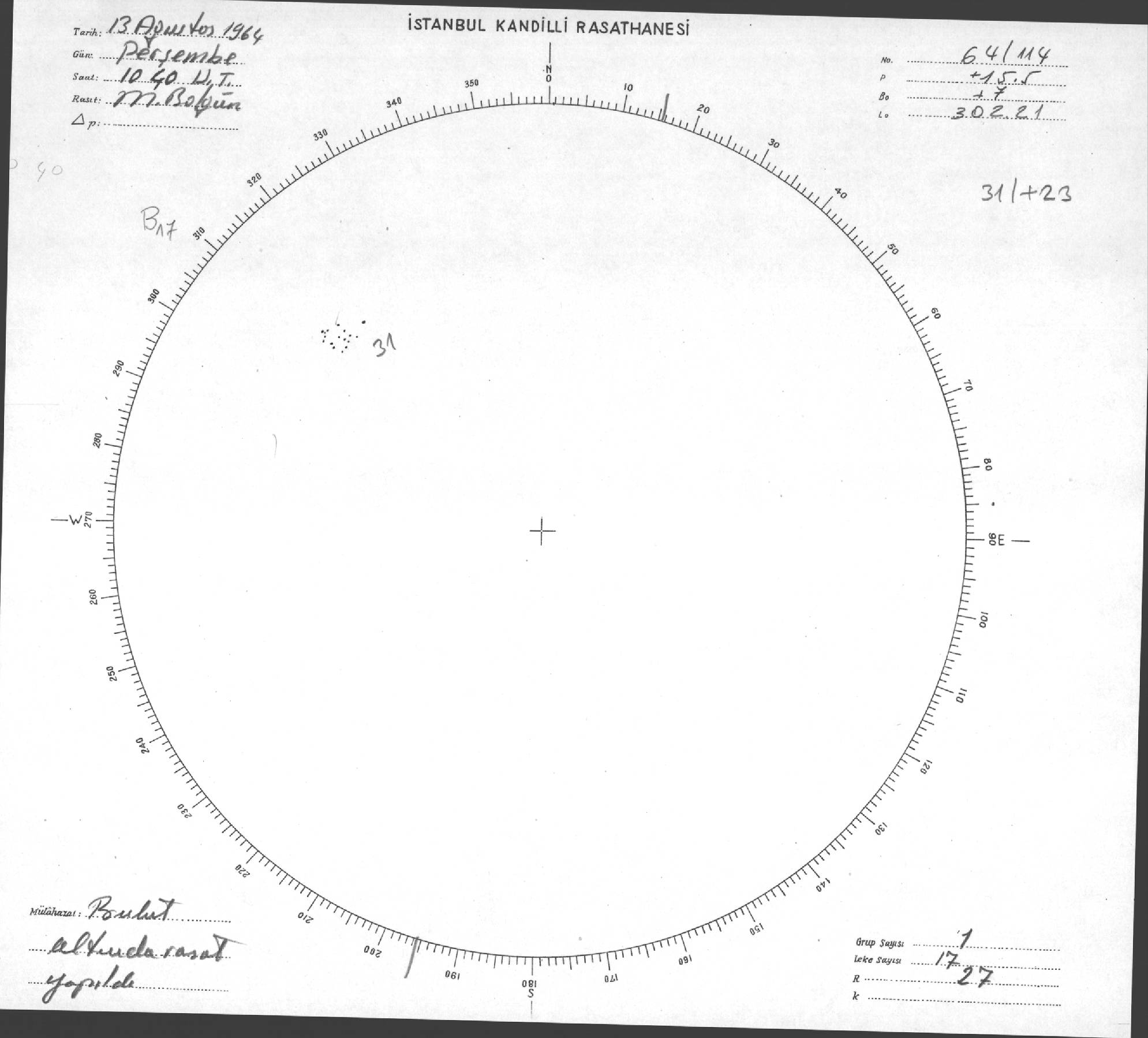 Güneş Lekesi Çizimi - 13.08.1964