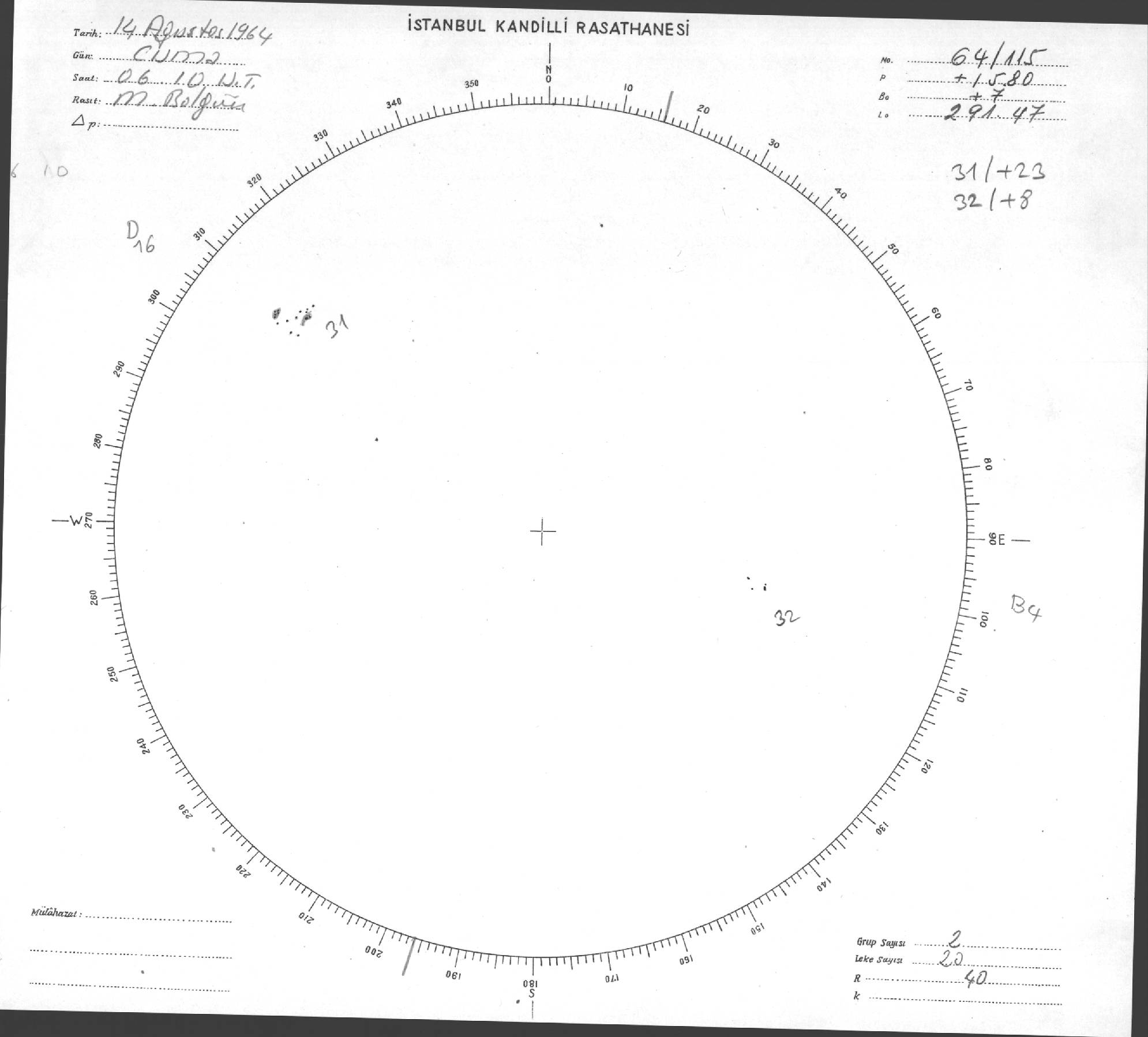 Güneş Lekesi Çizimi - 14.08.1964
