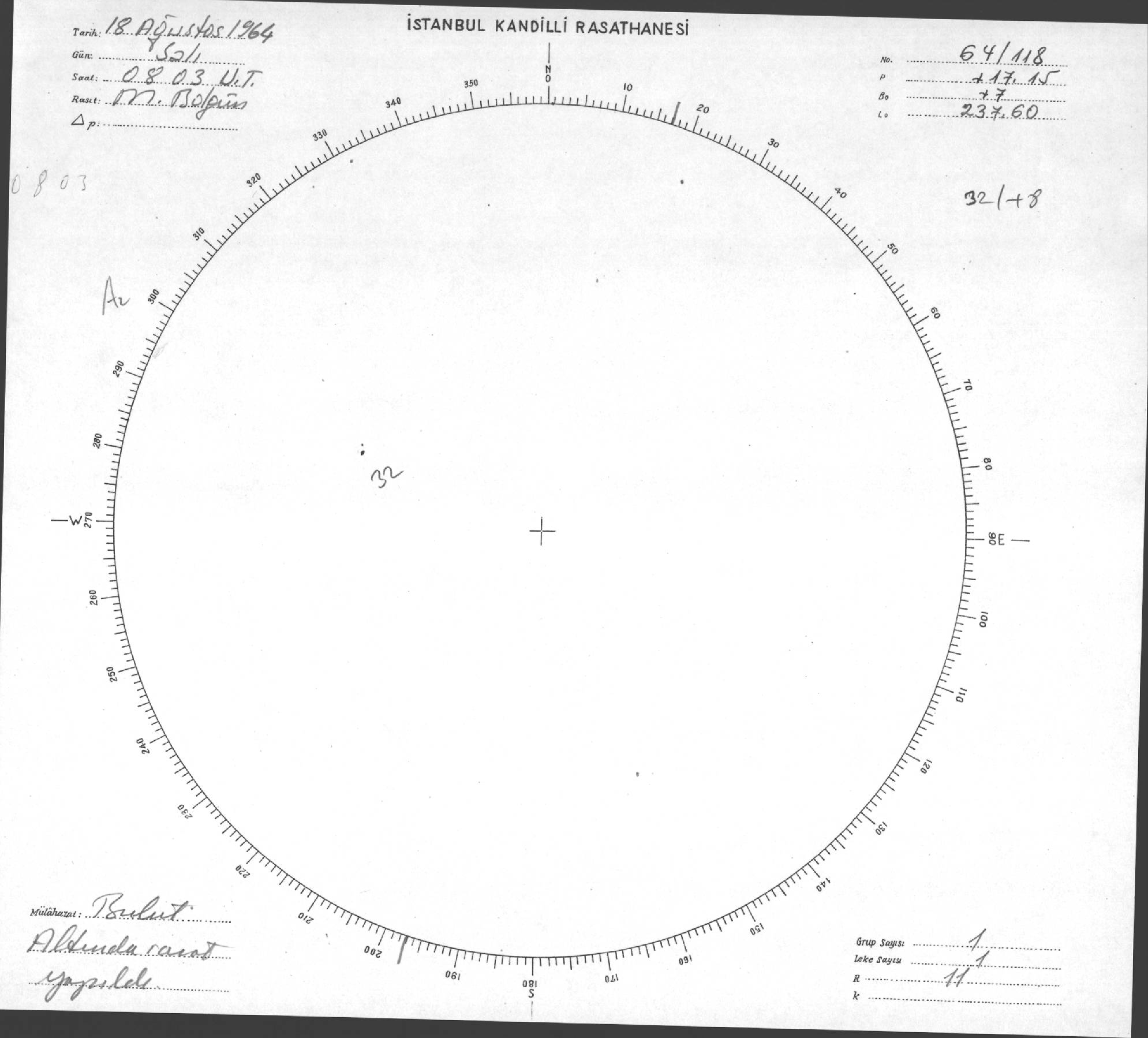 Güneş Lekesi Çizimi - 18.08.1964