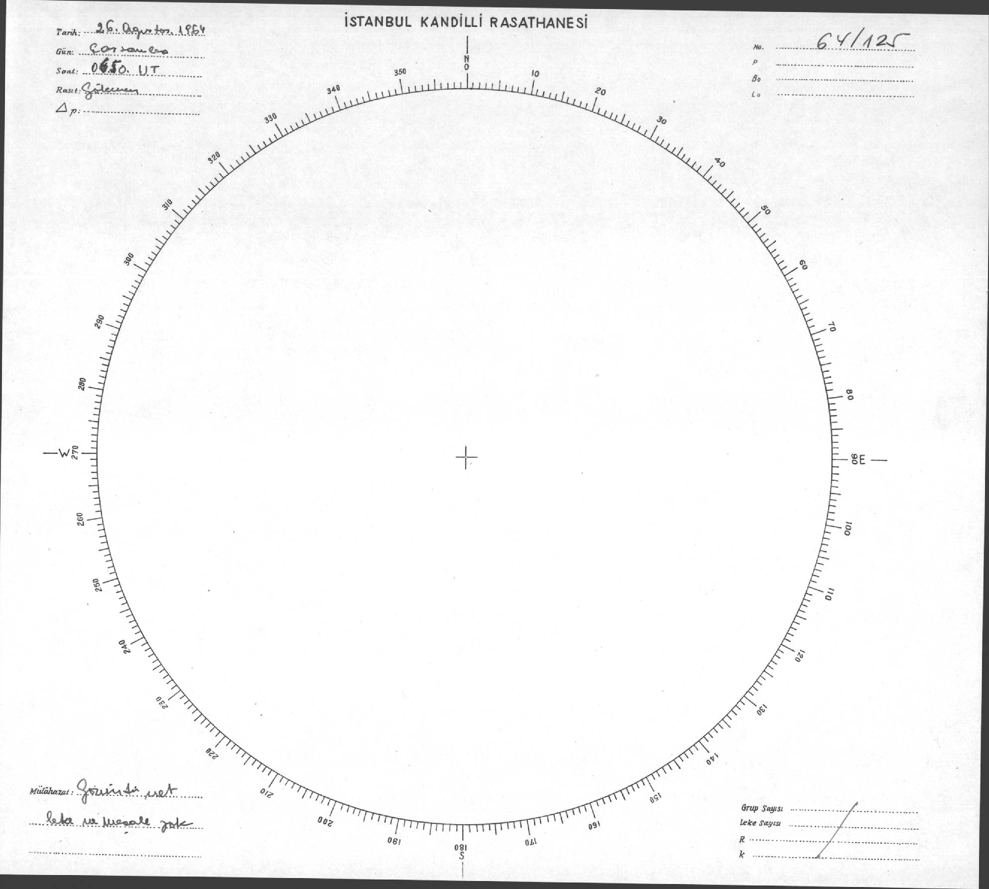 Güneş Lekesi Çizimi - 26.08.1964
