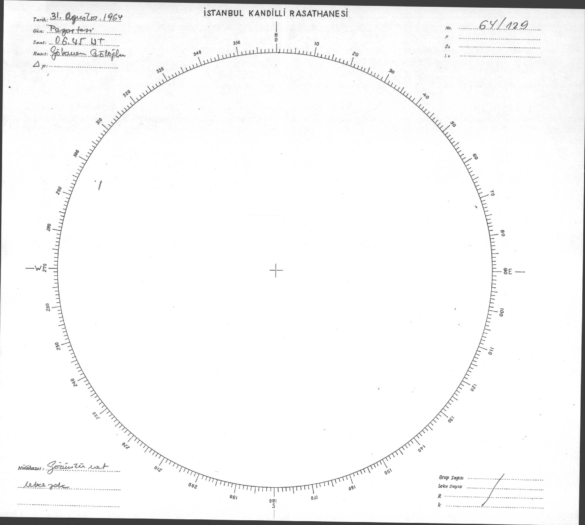 Güneş Lekesi Çizimi - 31.08.1964