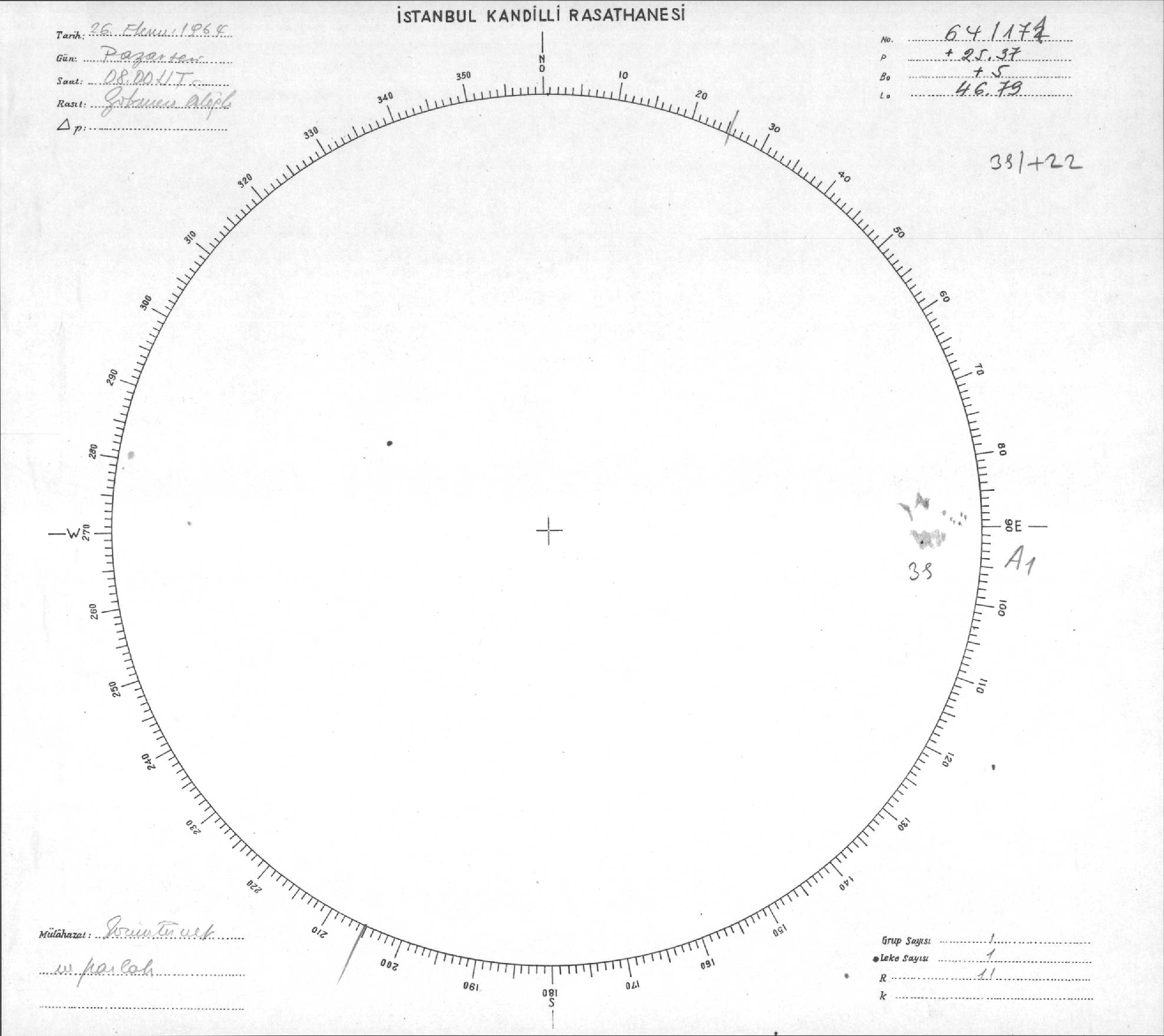 Güneş Lekesi Çizimi - 26.10.1964