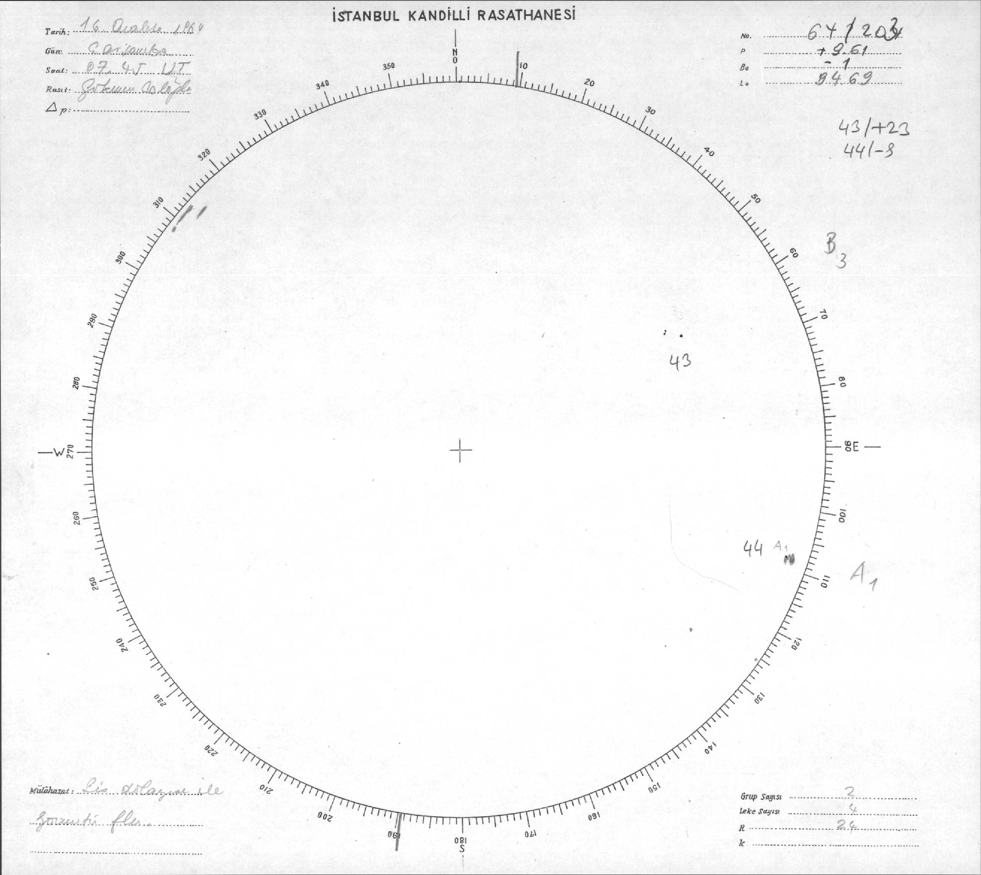Güneş Lekesi Çizimi - 16.12.1964