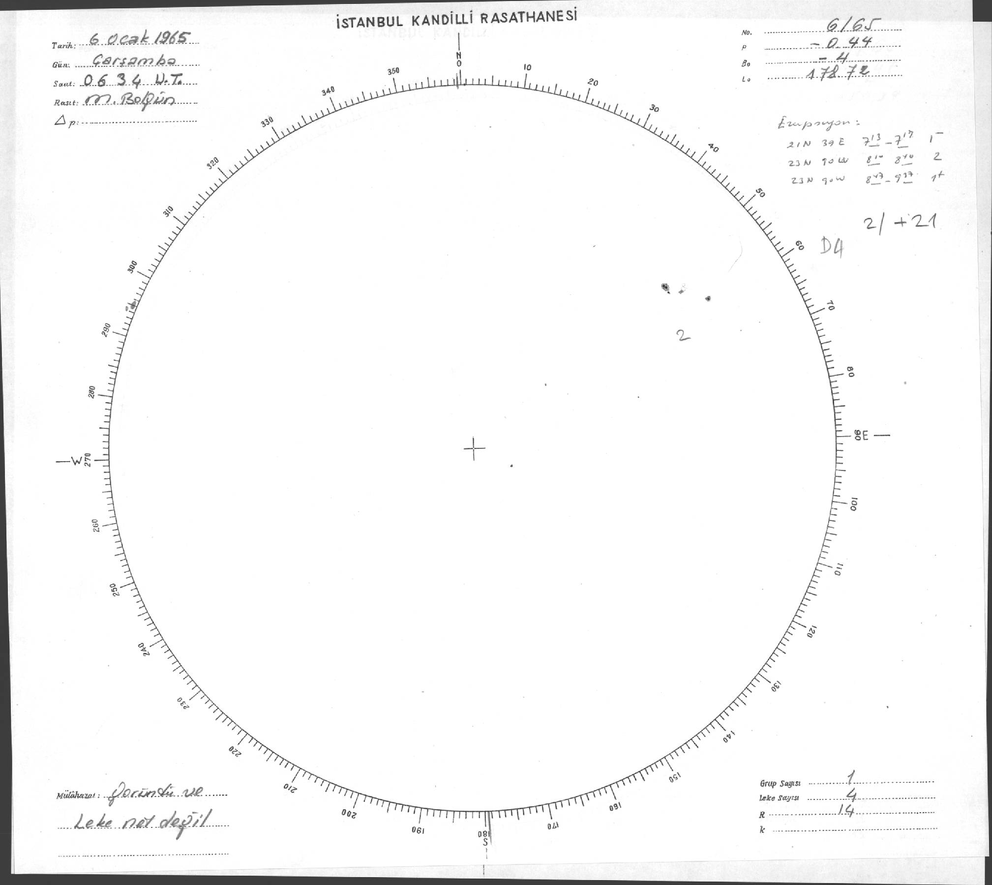 Güneş Lekesi Çizimi - 06.01.1965
