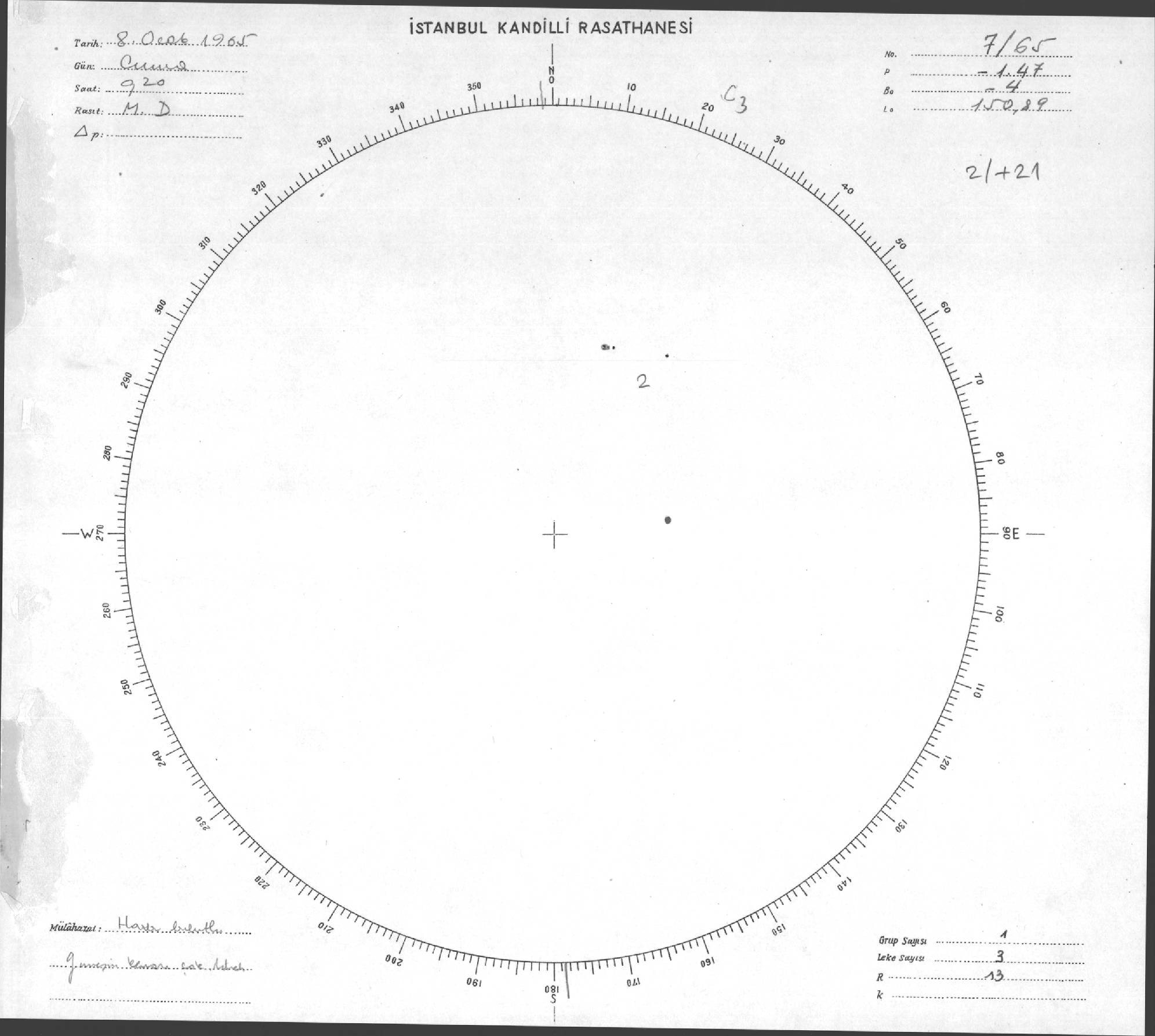 Güneş Lekesi Çizimi - 08.01.1965