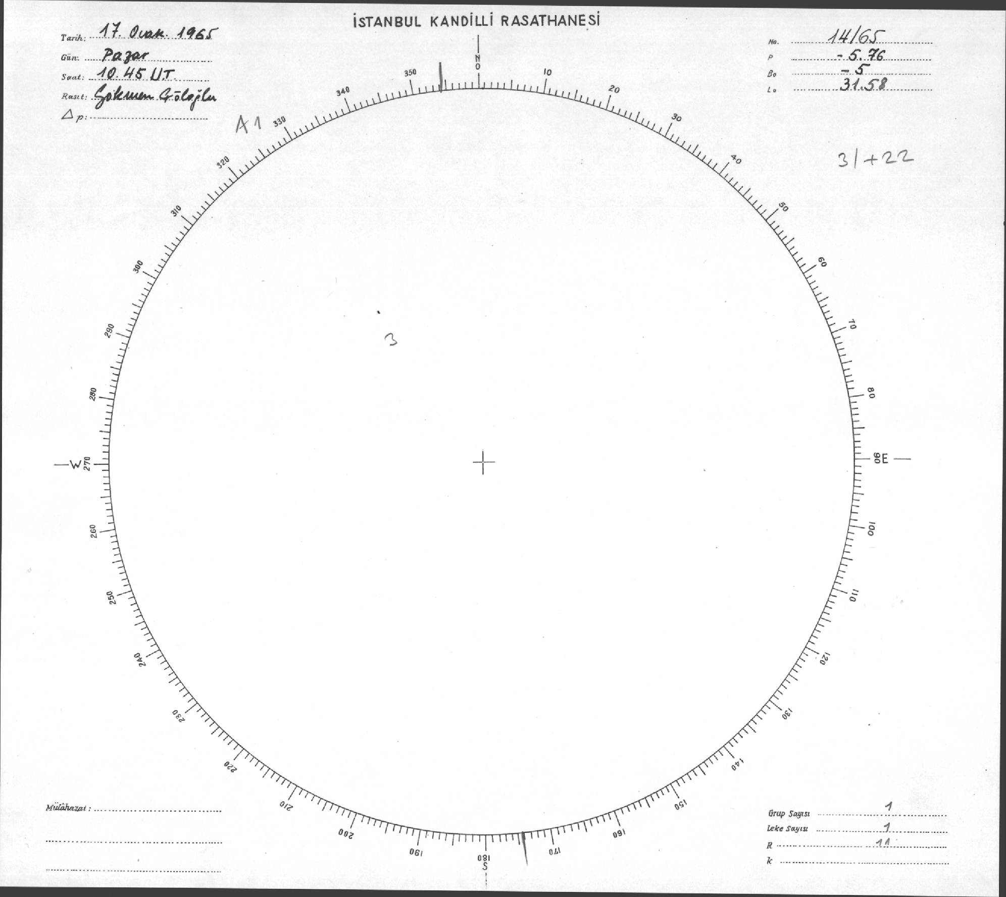 Güneş Lekesi Çizimi - 17.01.1965