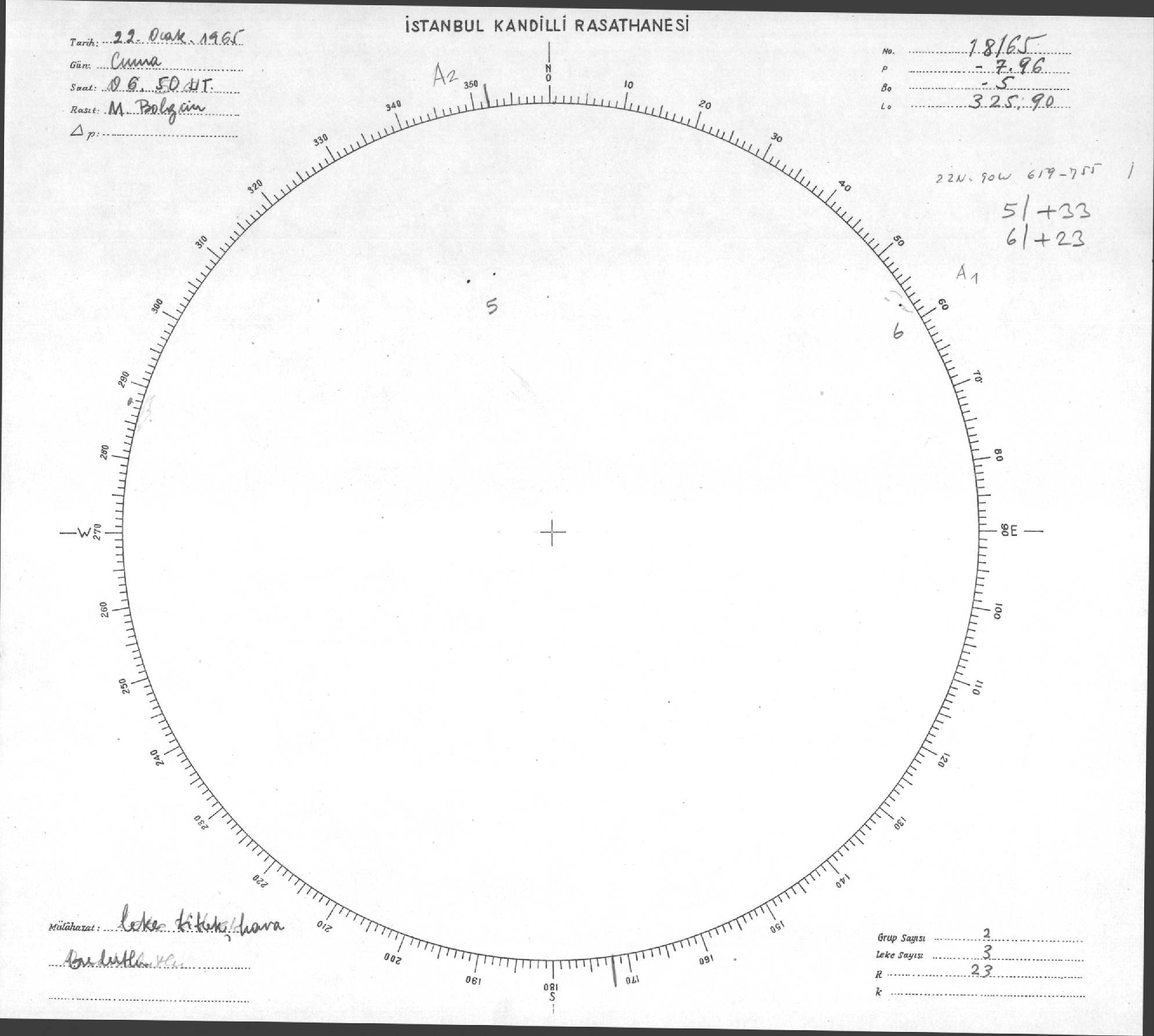 Güneş Lekesi Çizimi - 22.01.1965