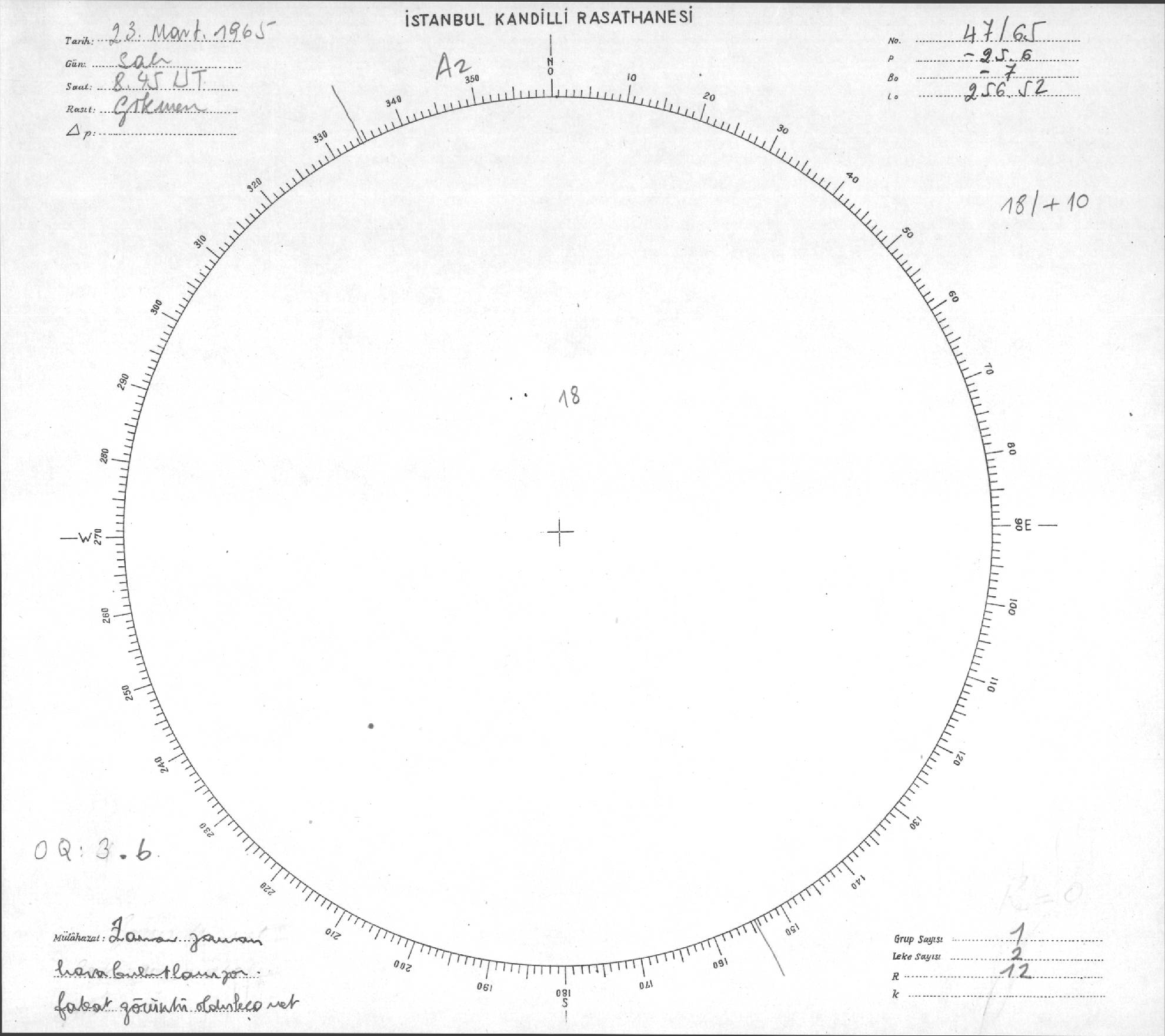 Güneş Lekesi Çizimi - 23.03.1965