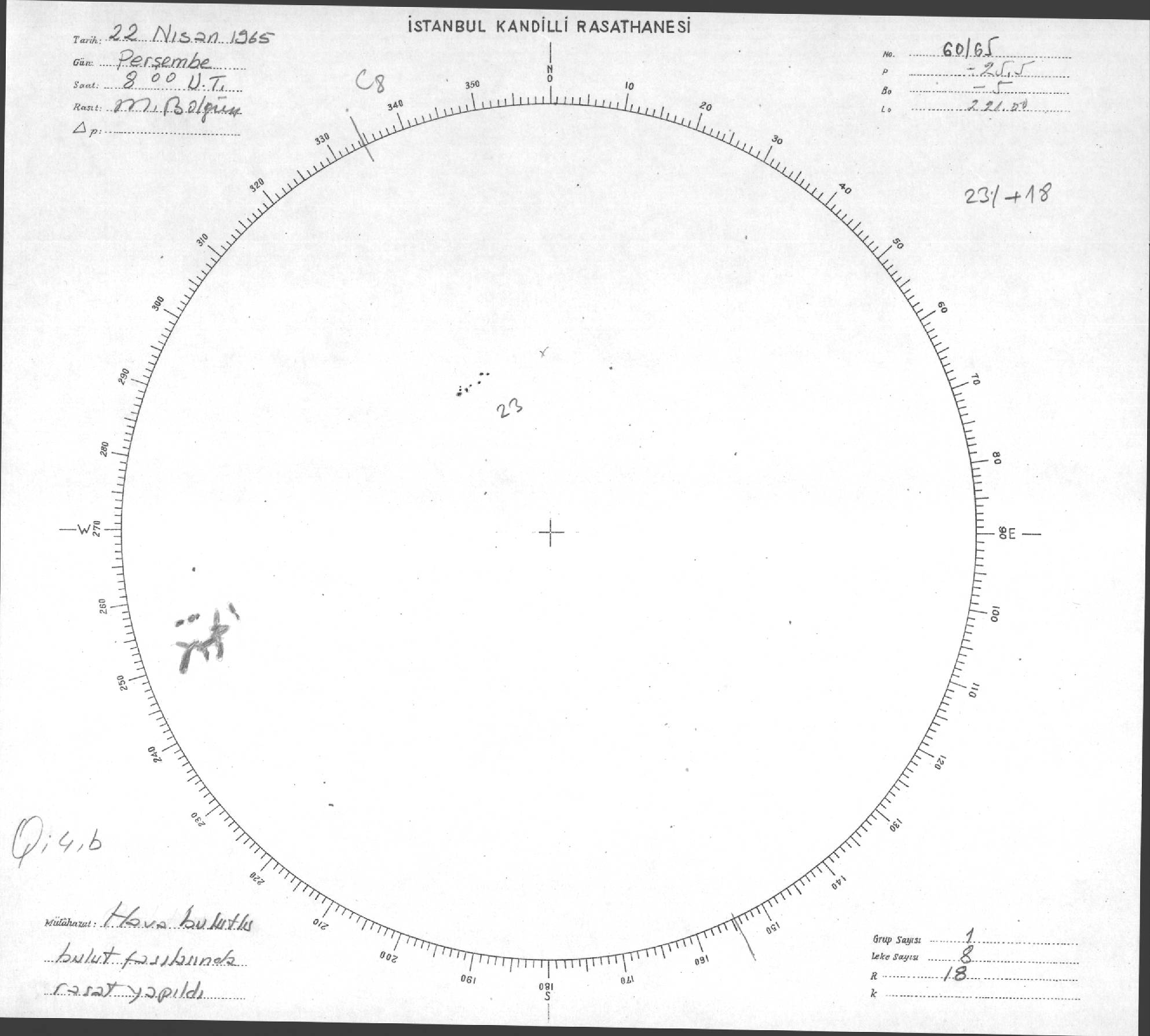 Güneş Lekesi Çizimi - 22.04.1965
