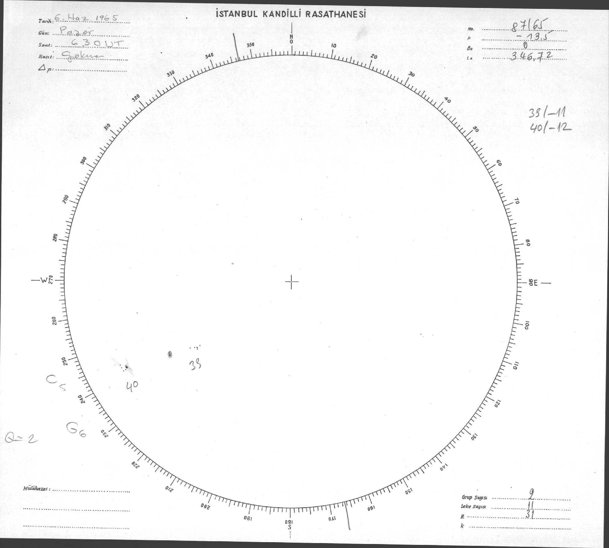 Güneş Lekesi Çizimi - 06.06.1965