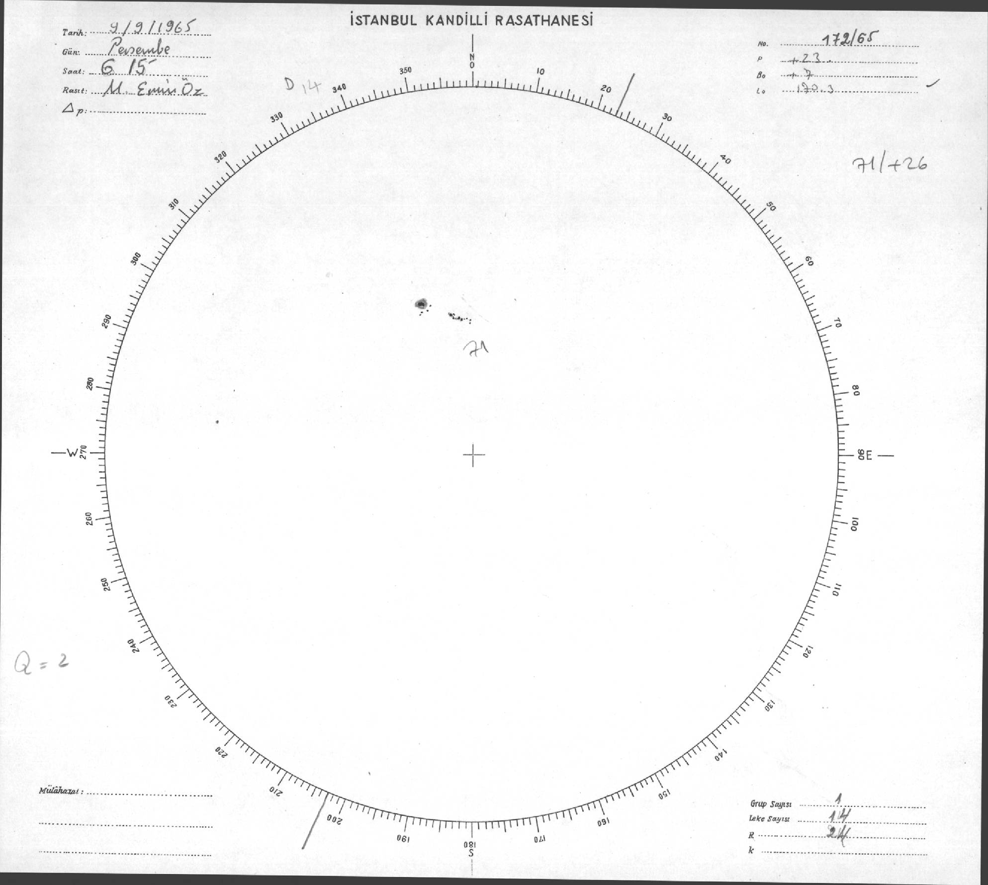 Güneş Lekesi Çizimi - 09.09.1965