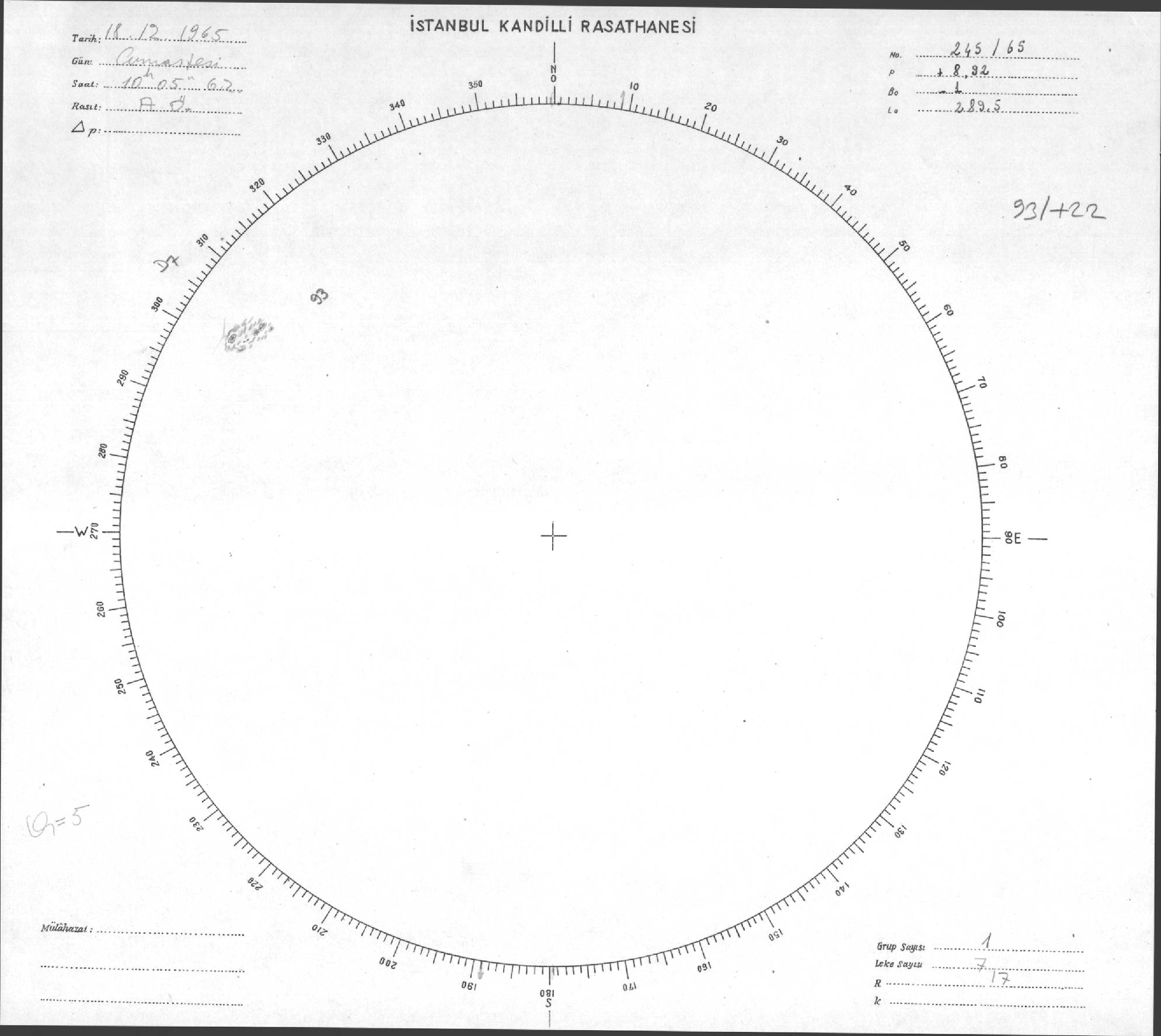Güneş Lekesi Çizimi - 18.12.1965
