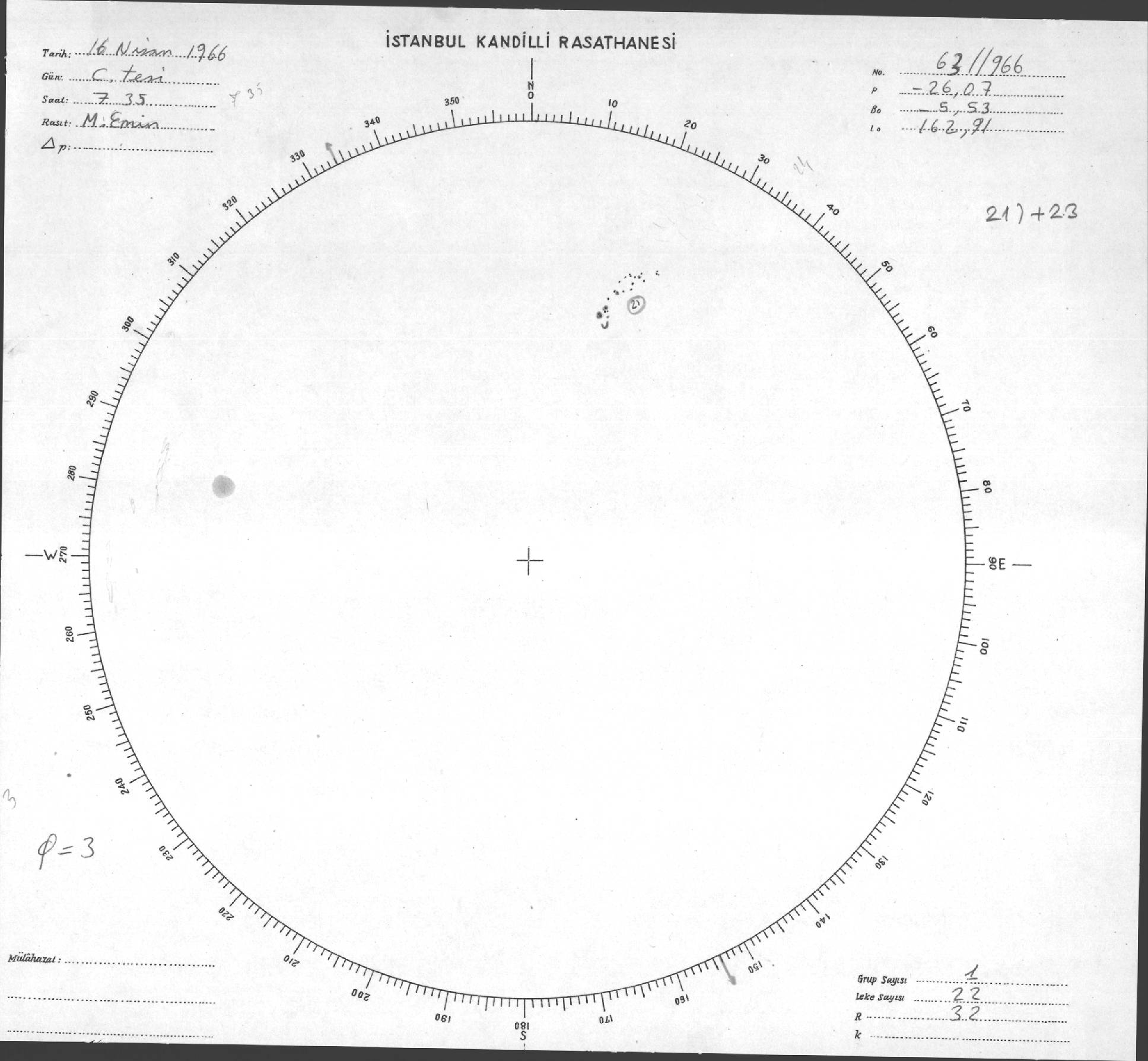 Güneş Lekesi Çizimi - 16.04.1966