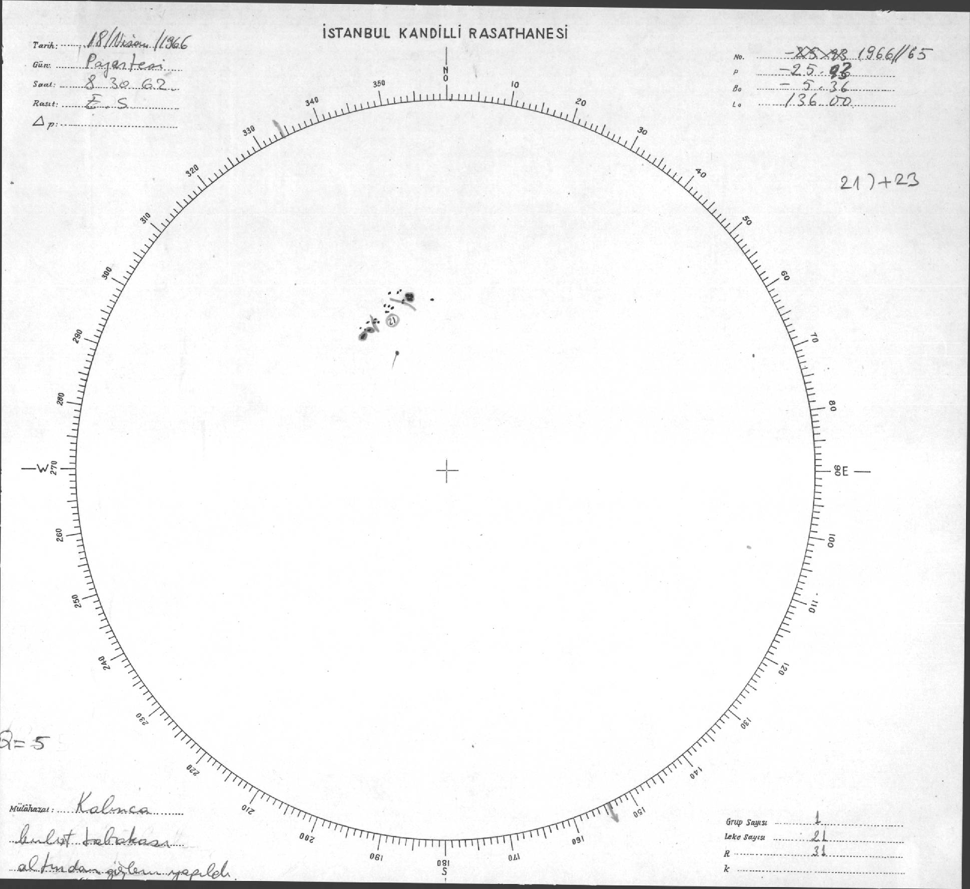 Güneş Lekesi Çizimi - 18.04.1966