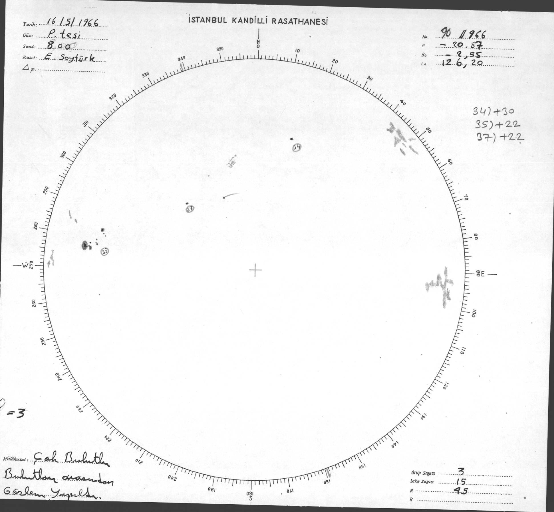 Güneş Lekesi Çizimi - 16.05.1966