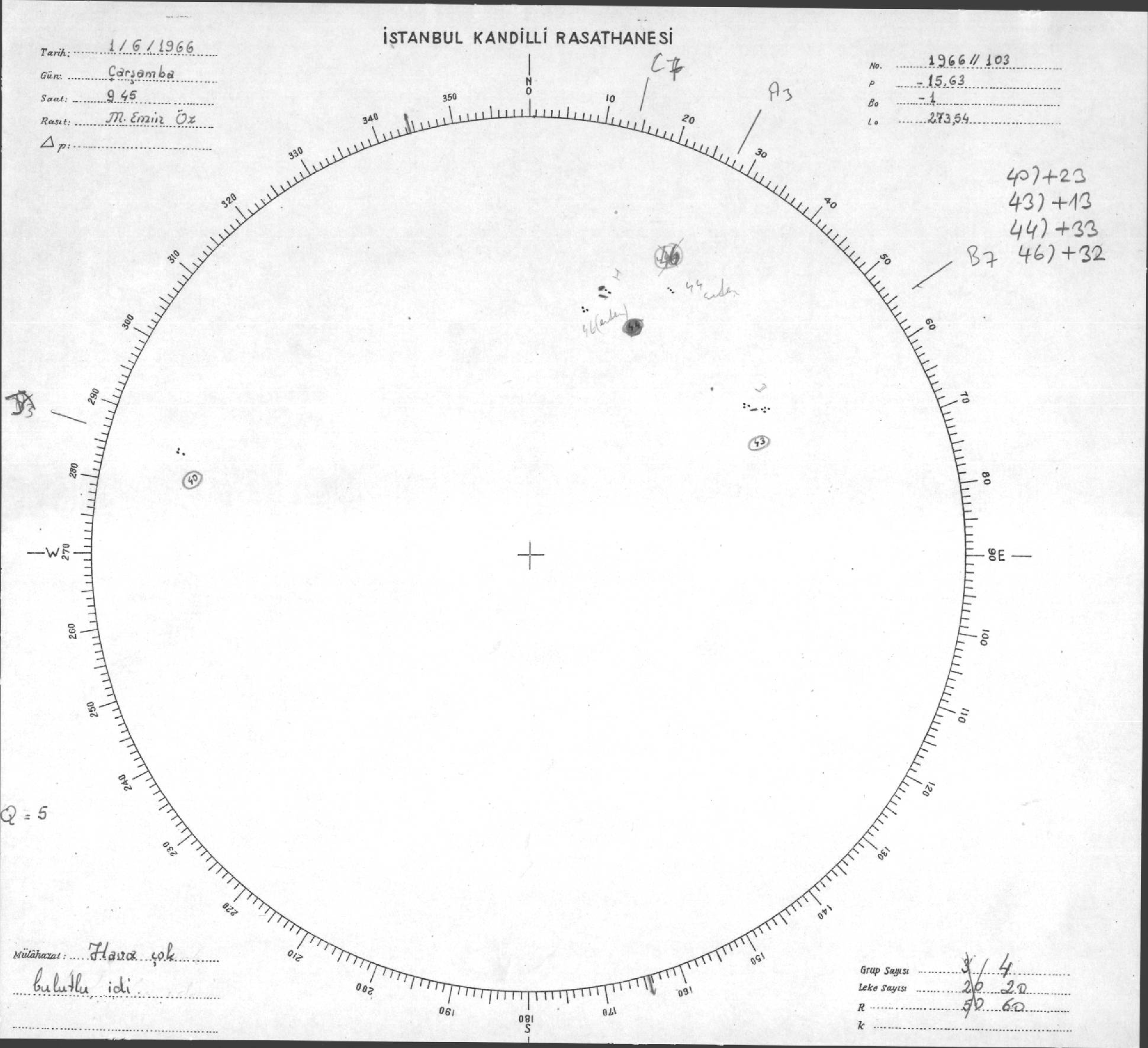 Güneş Lekesi Çizimi - 01.06.1966