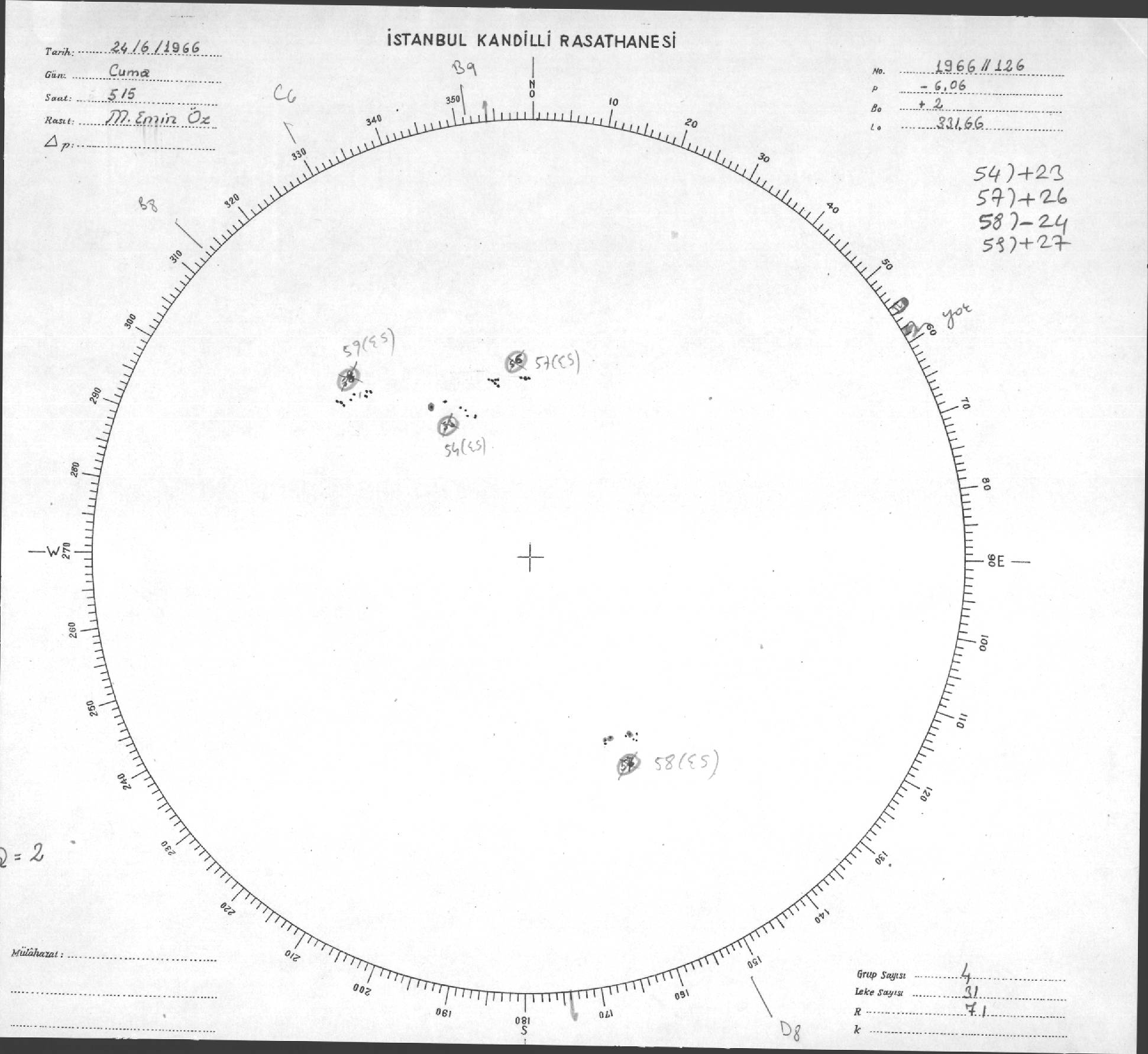Güneş Lekesi Çizimi - 24.06.1966