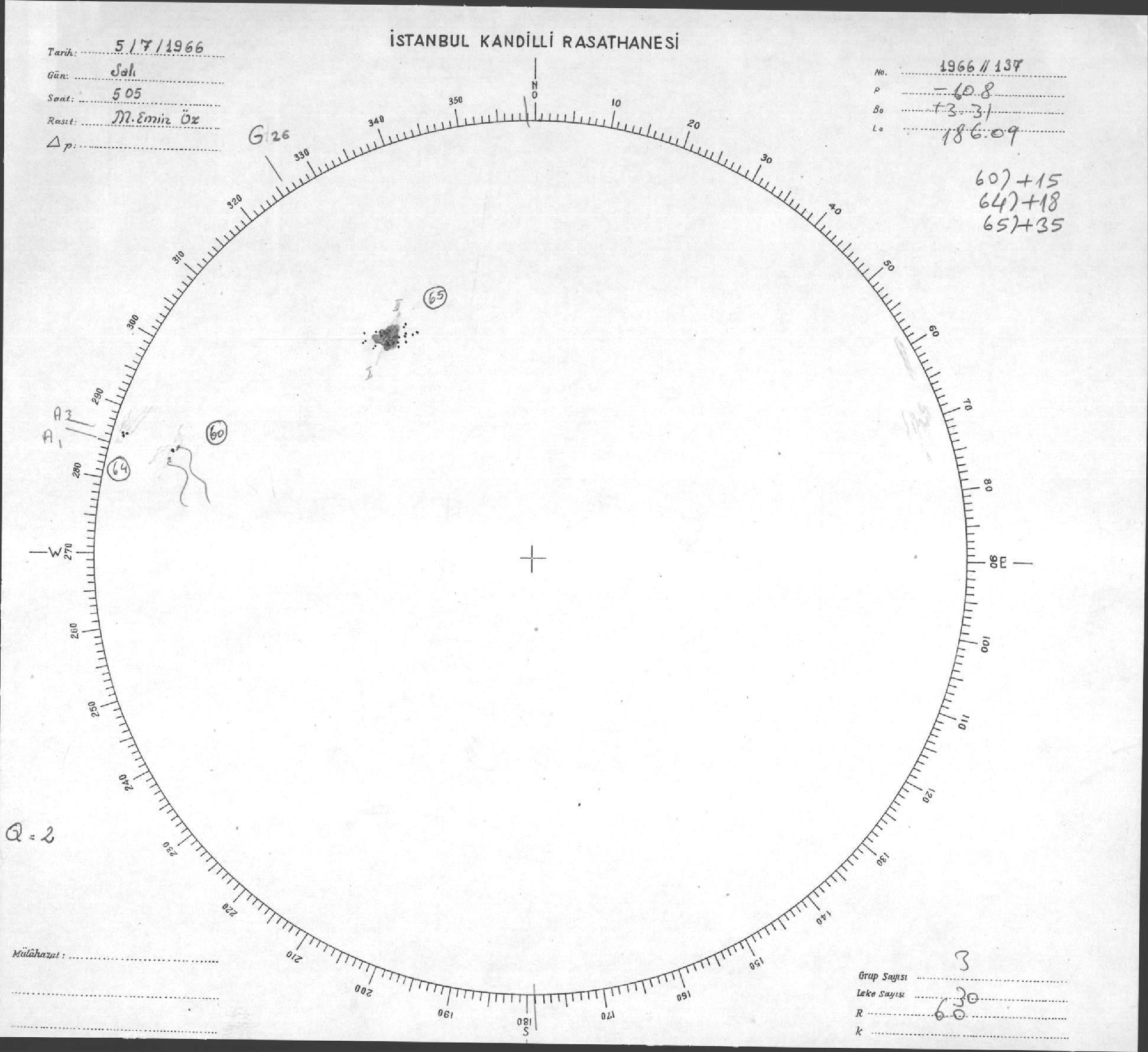 Güneş Lekesi Çizimi - 05.07.1966