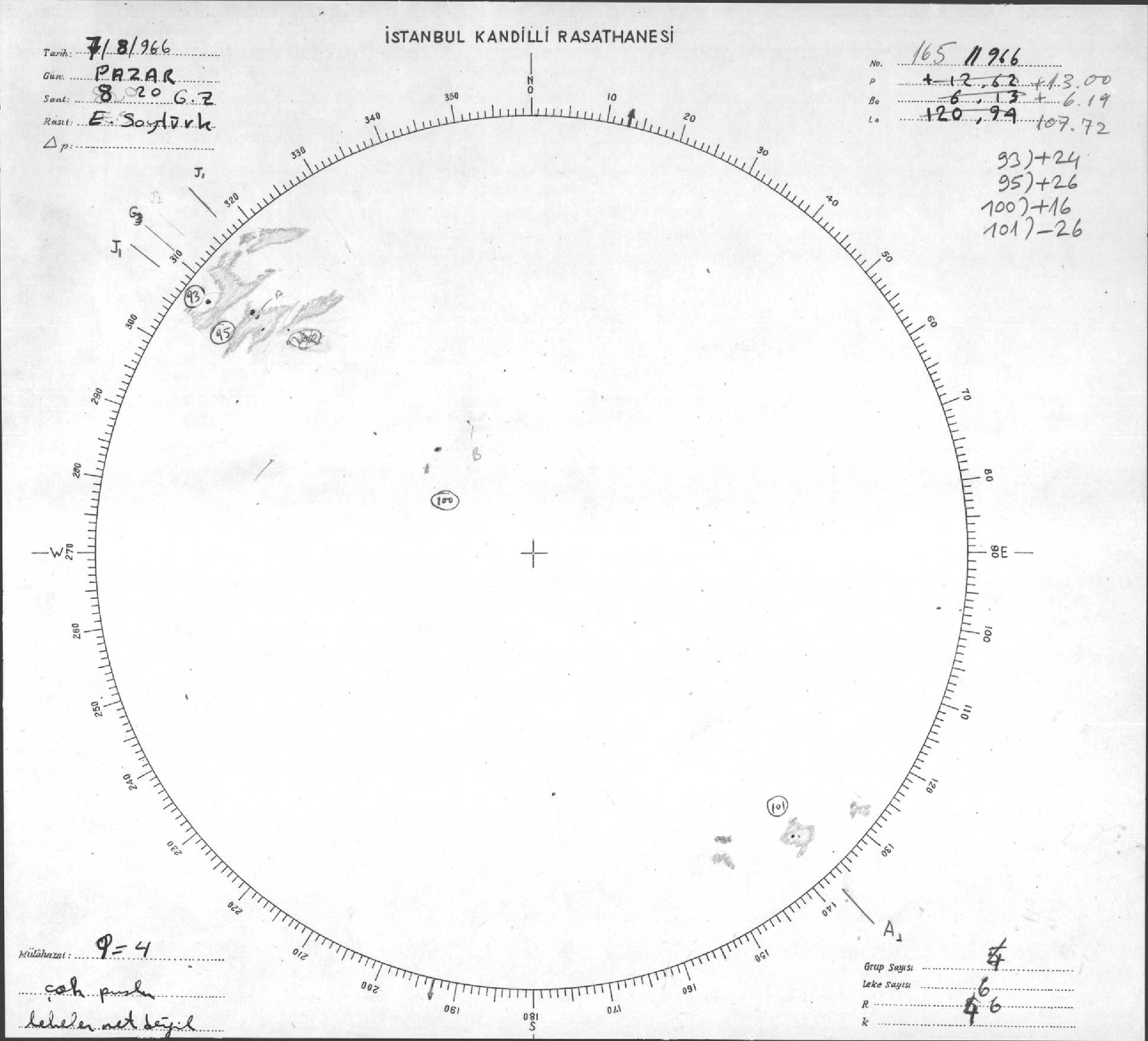 Güneş Lekesi Çizimi - 07.08.1966