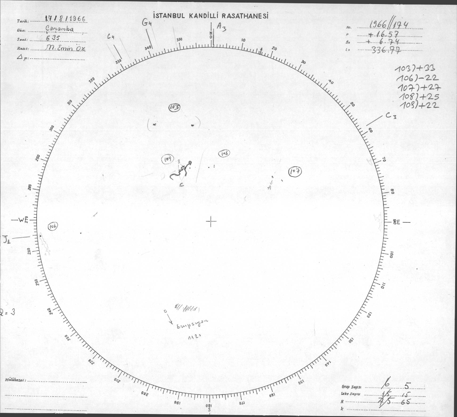 Güneş Lekesi Çizimi - 17.08.1966