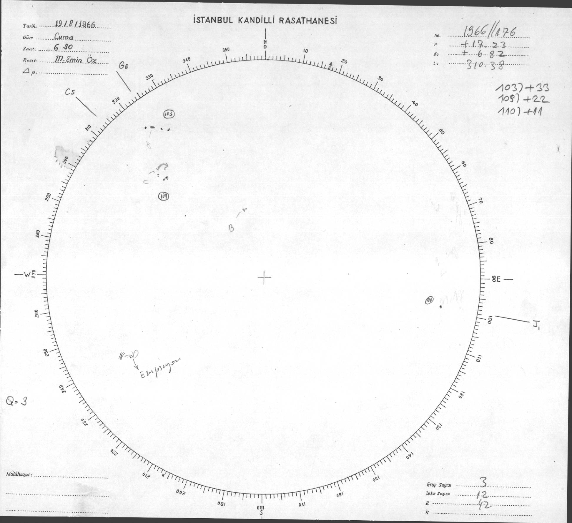 Güneş Lekesi Çizimi - 19.08.1966