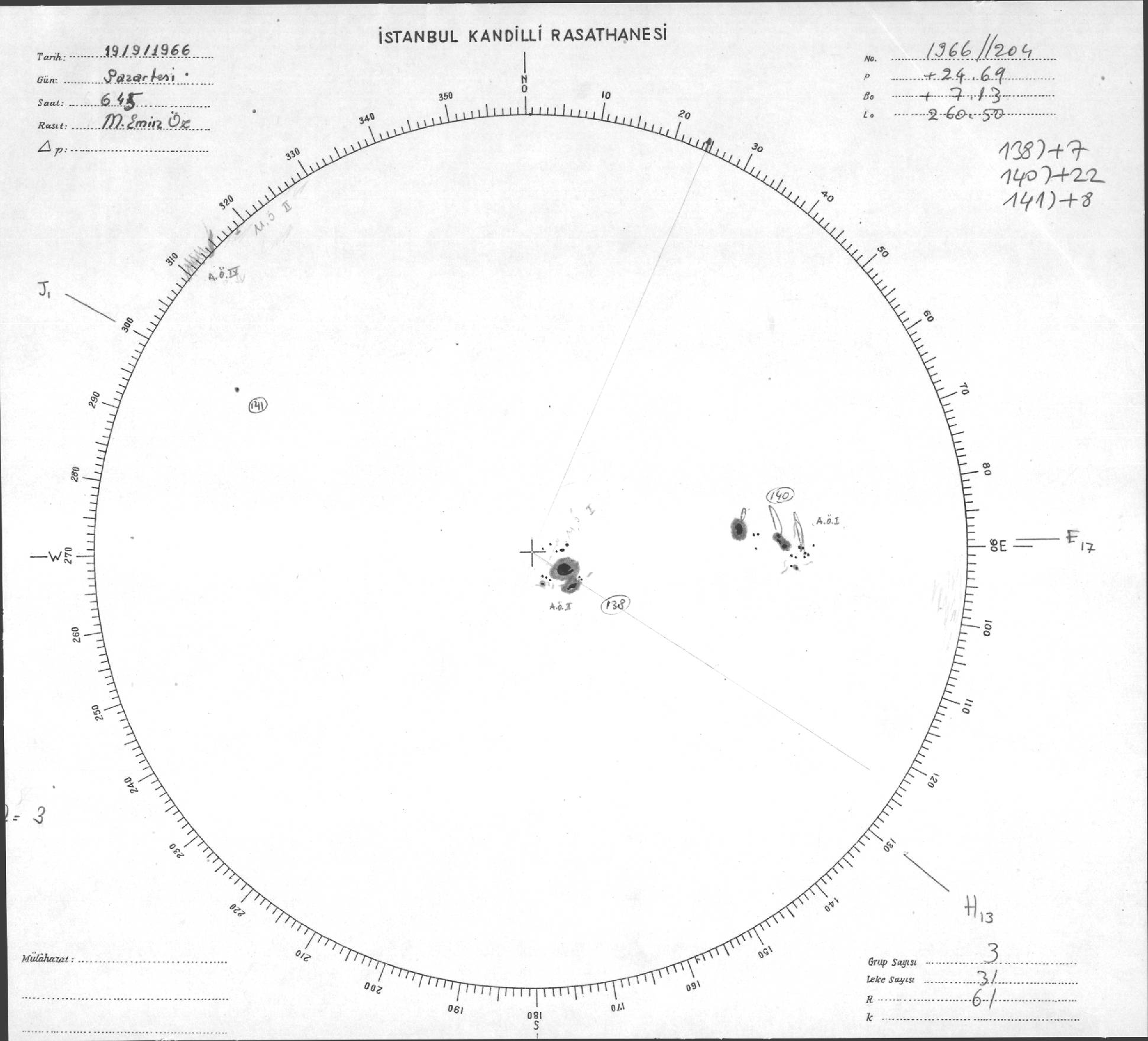 Güneş Lekesi Çizimi - 19.09.1966