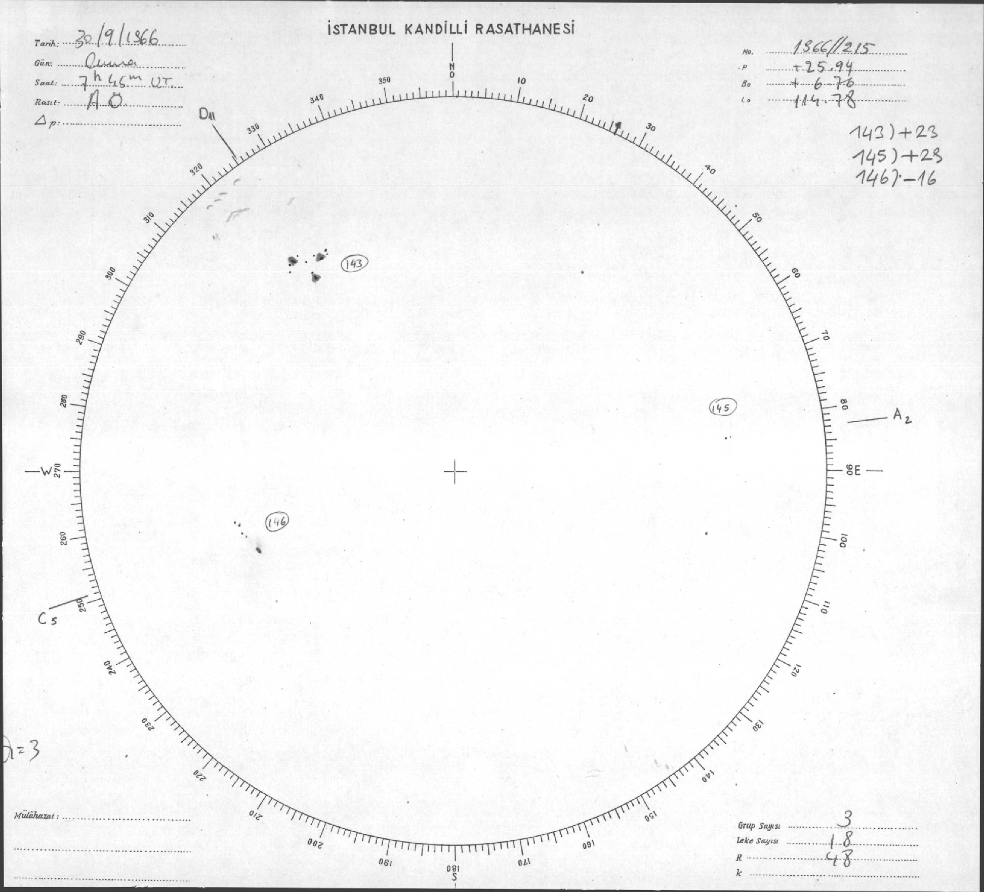Güneş Lekesi Çizimi - 30.09.1966