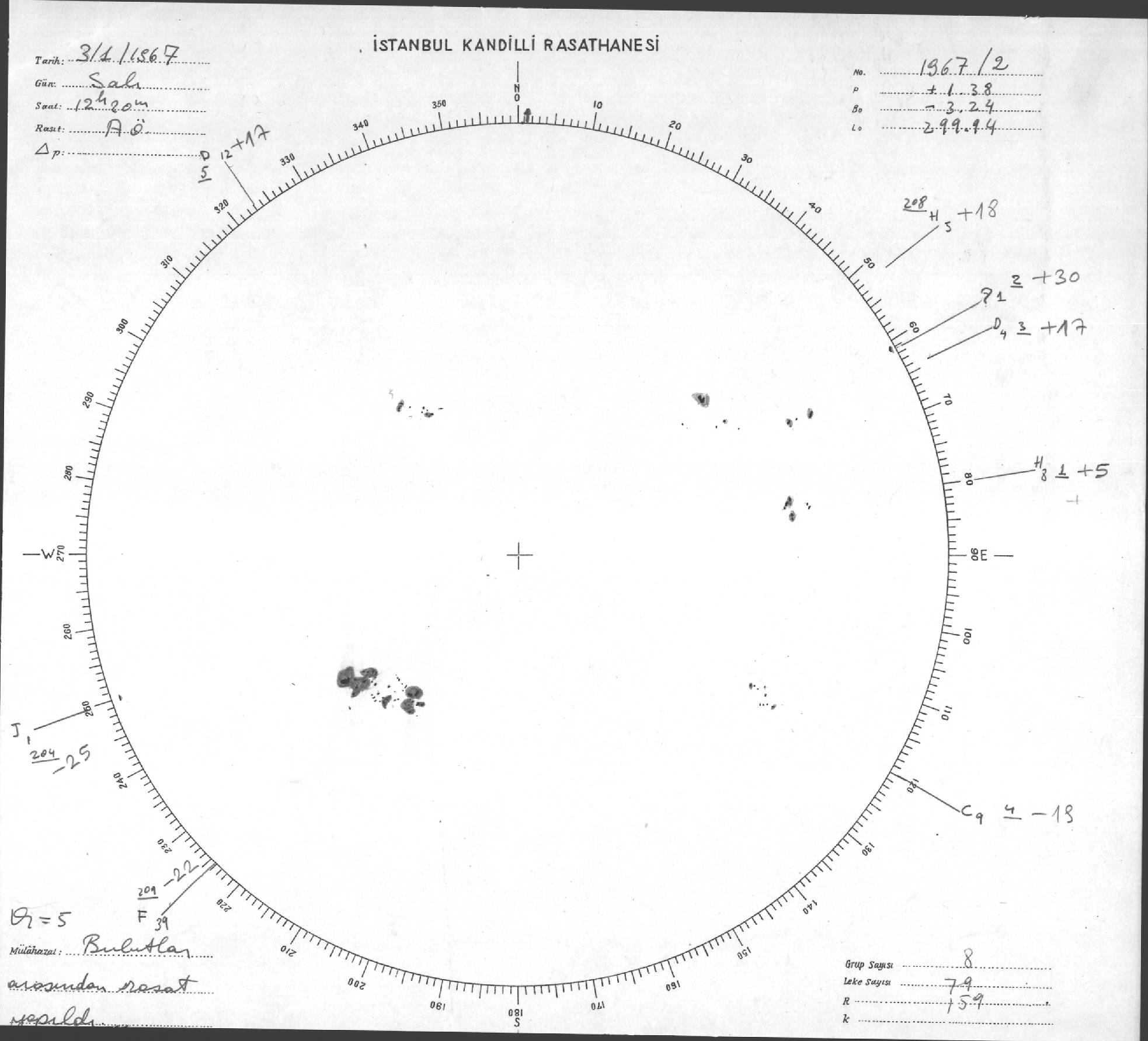 Güneş Lekesi Çizimi - 03.01.1967