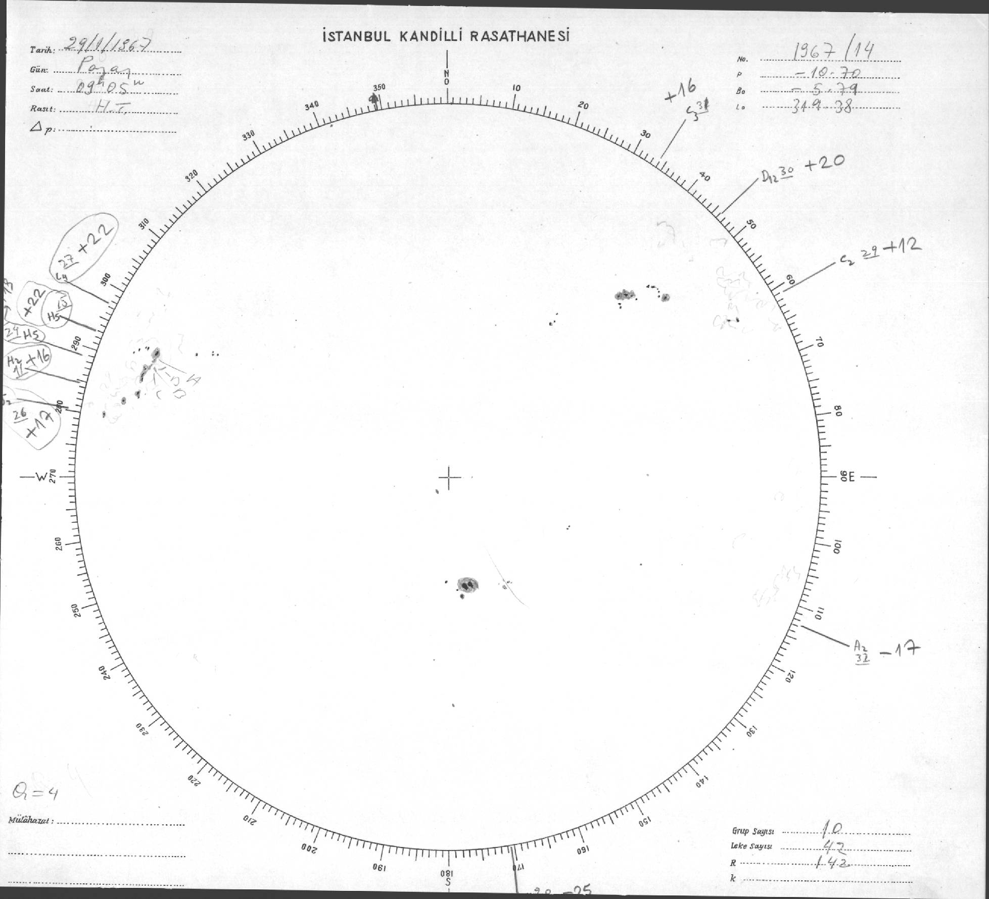 Güneş Lekesi Çizimi - 29.01.1967