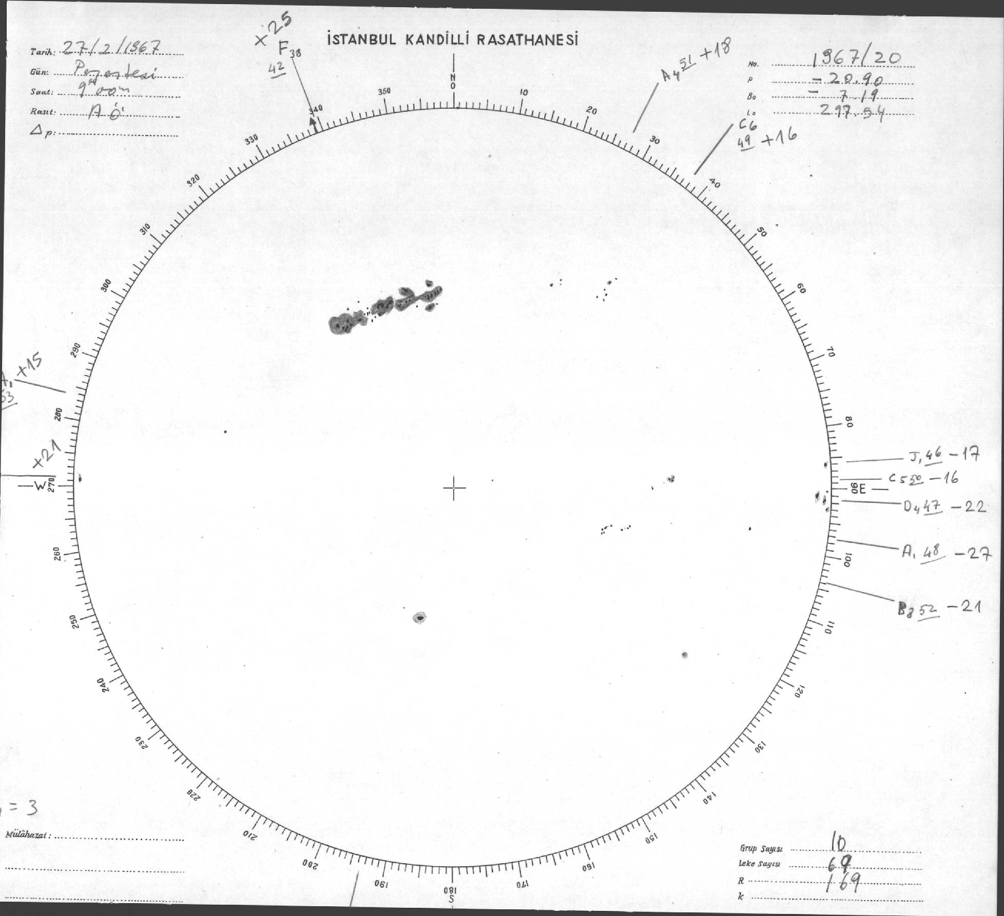 Güneş Lekesi Çizimi - 27.02.1967