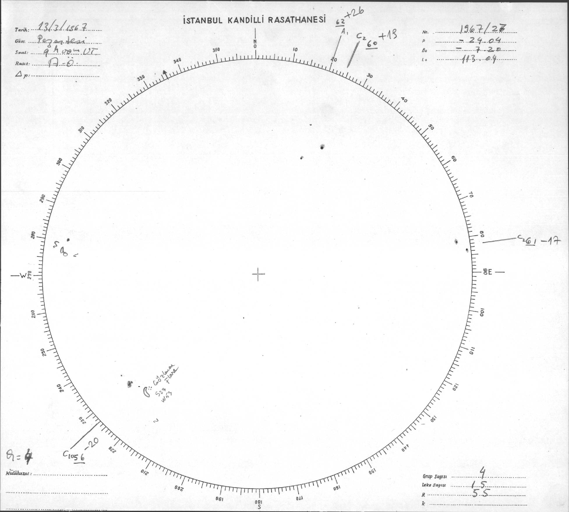 Güneş Lekesi Çizimi - 13.03.1967