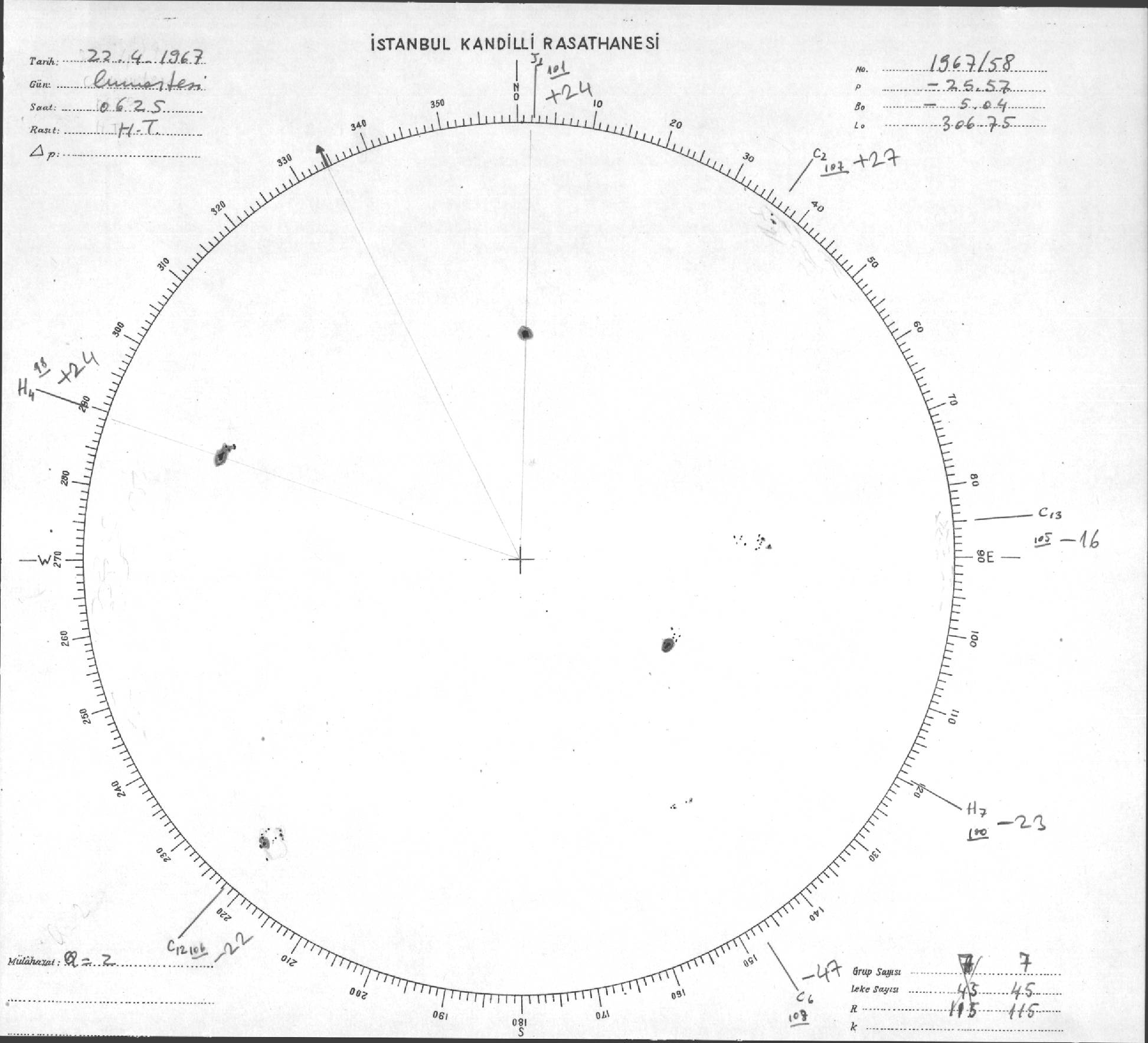 Güneş Lekesi Çizimi - 22.04.1967