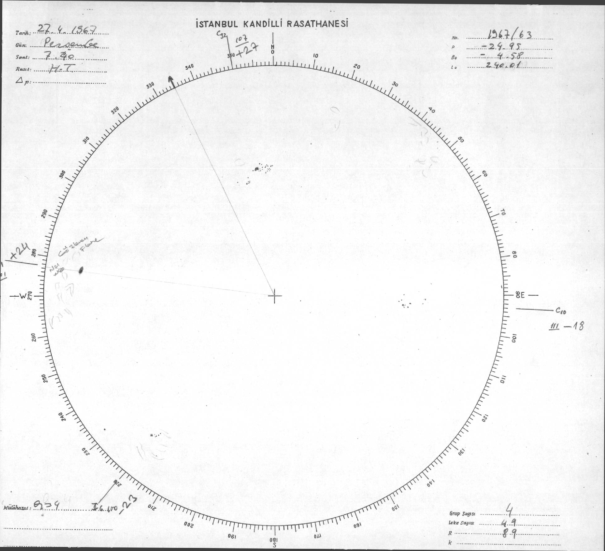 Güneş Lekesi Çizimi - 27.04.1967