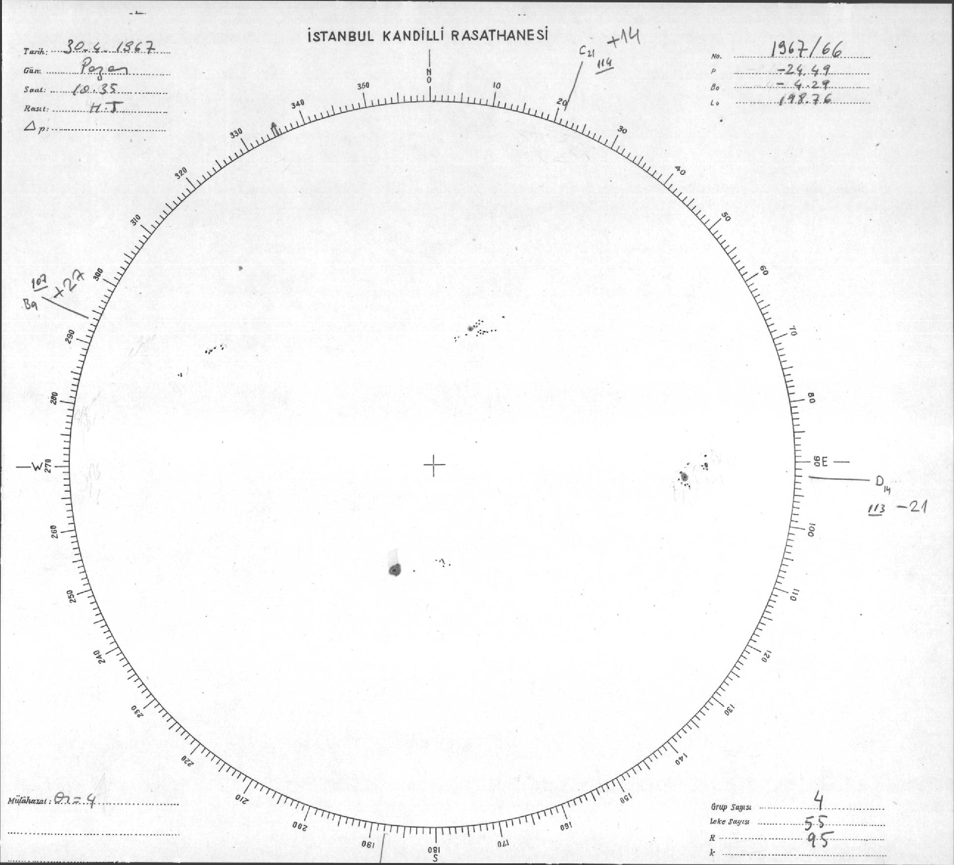 Güneş Lekesi Çizimi - 30.04.1967